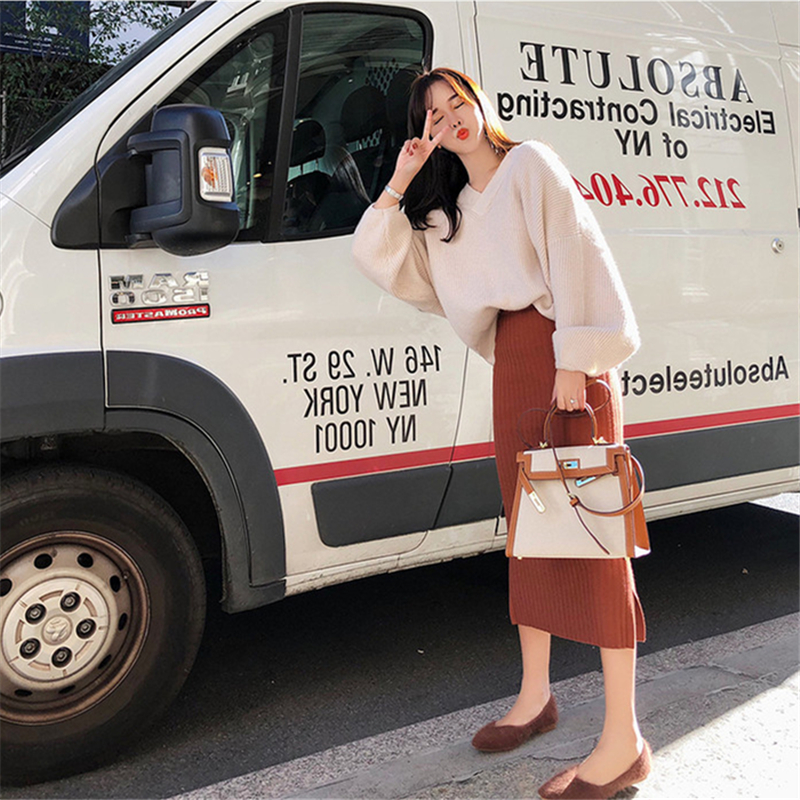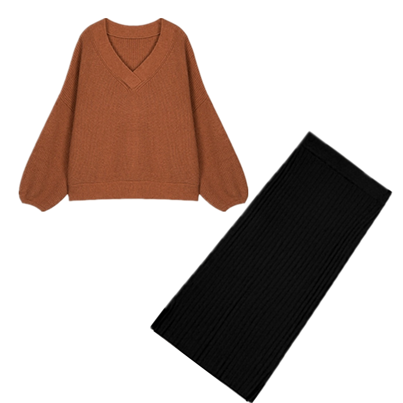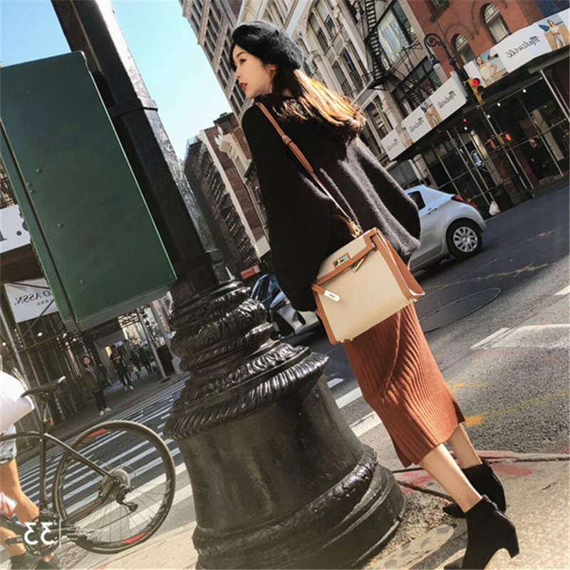1398桔紅半身裙+杏色毛衣|1398黑色半身裙+淺灰毛衣|1398桔紅半身裙+黑色毛衣|1398灰色半身裙+南瓜色毛衣