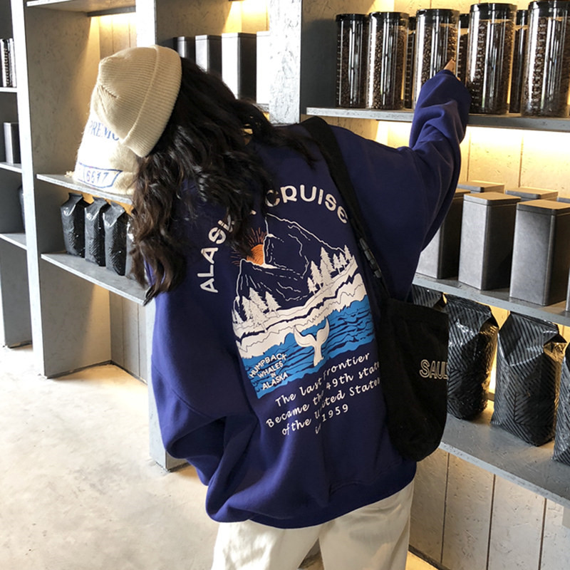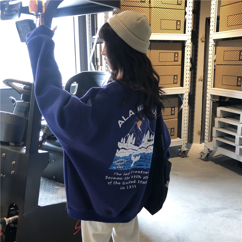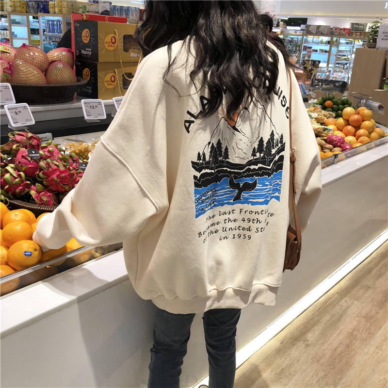 2018新款秋冬女裝韓版中長款原宿風字母卡通寬松加絨加厚衛衣外套