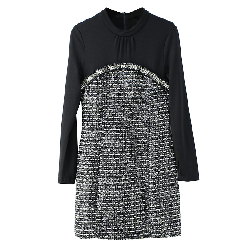 名媛氣質毛呢裙女秋冬2018新款修身韓版連衣甜美拼接花呢打底裙潮