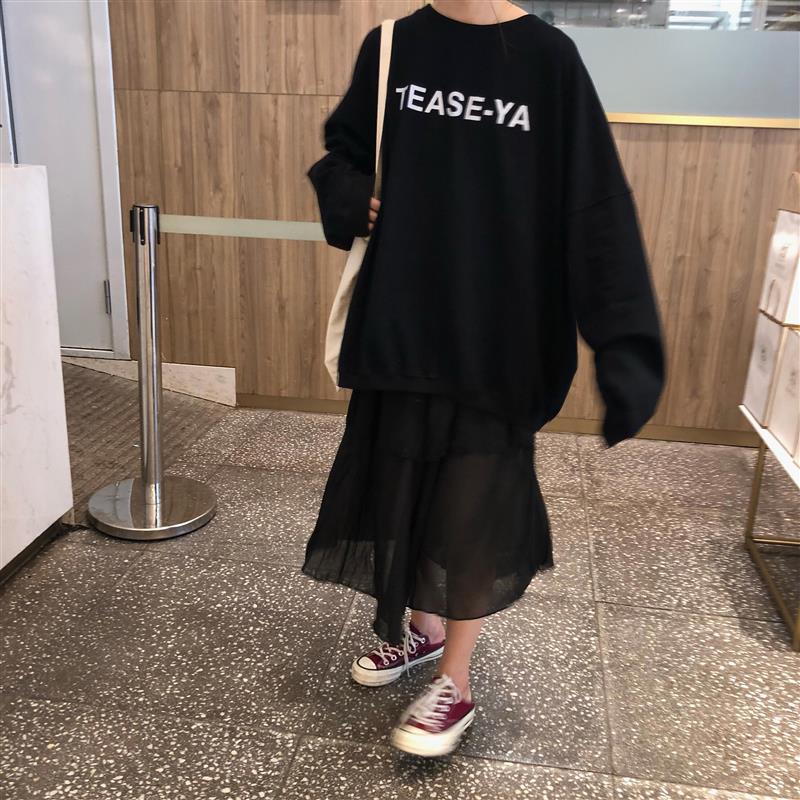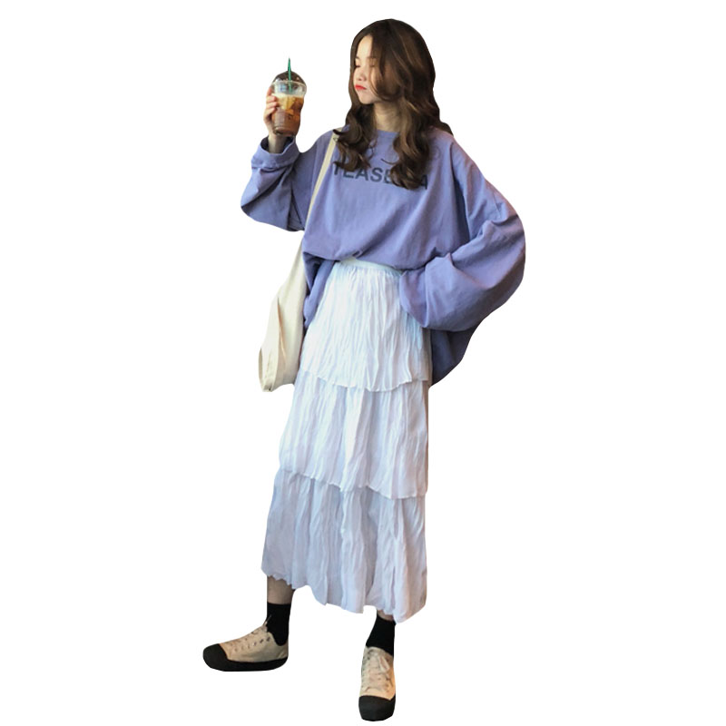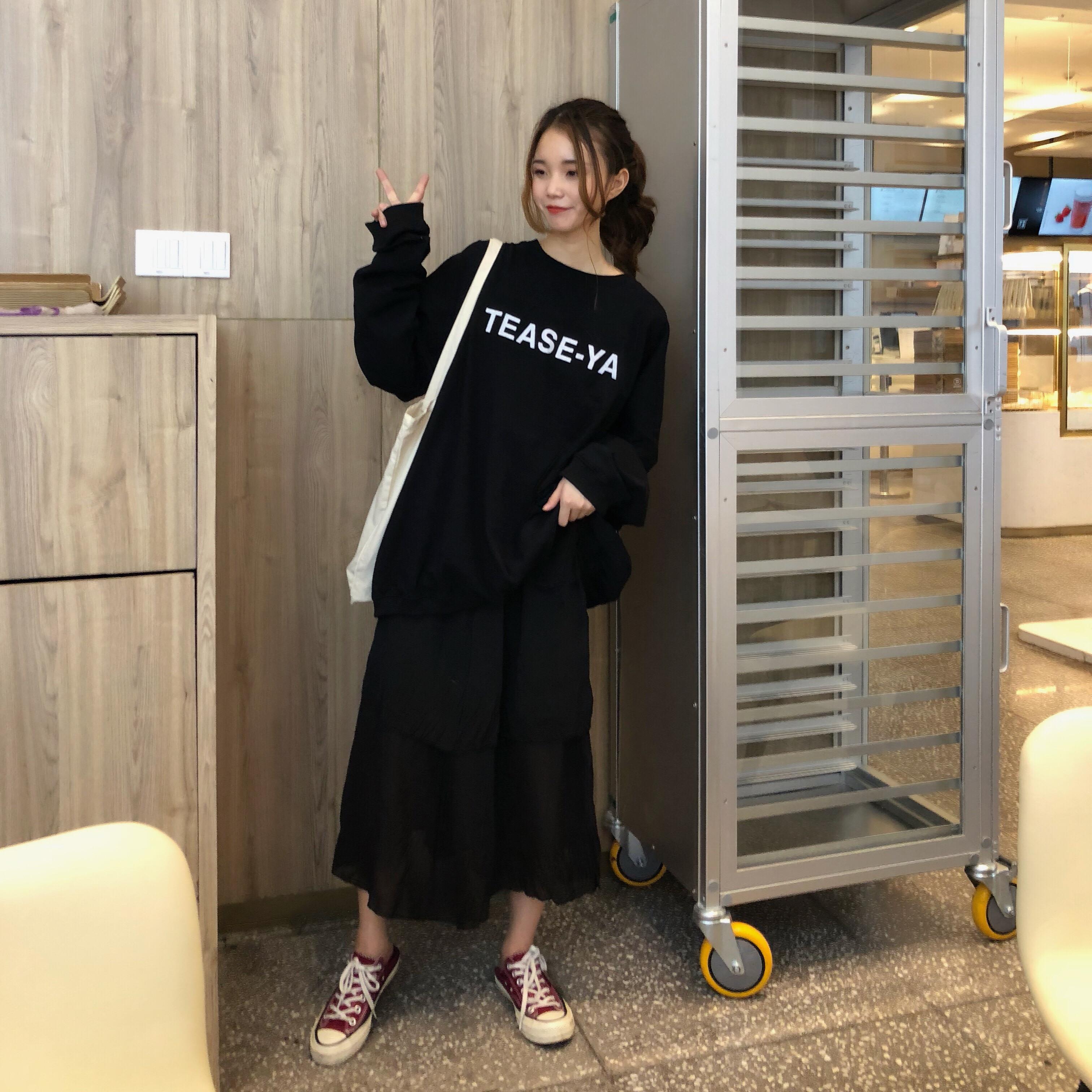 / 韓版時尚休閑套裝秋季女裝字母衛衣外套+半身裙蛋糕裙長裙兩件套