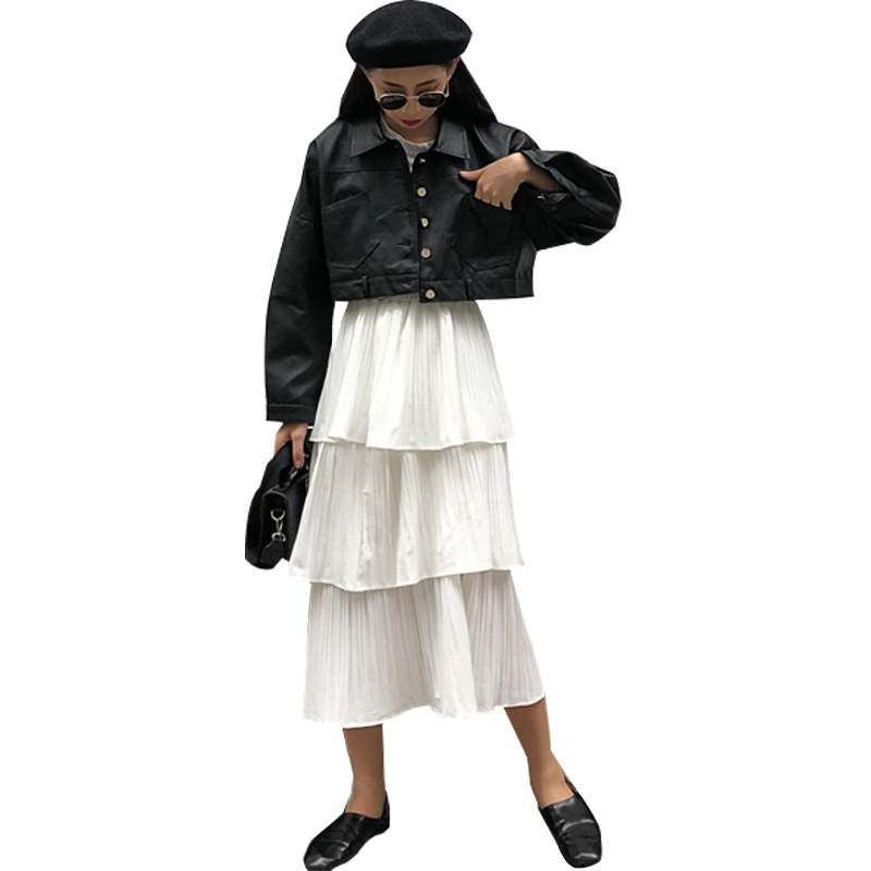 套裝女秋冬2018新款秋裝t恤白色蛋糕半身裙子網紅兩件套上衣顯瘦