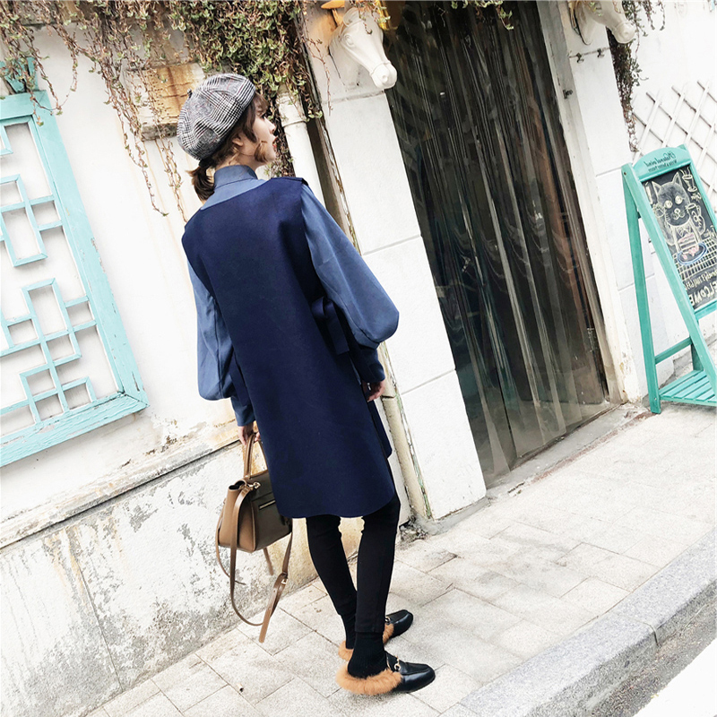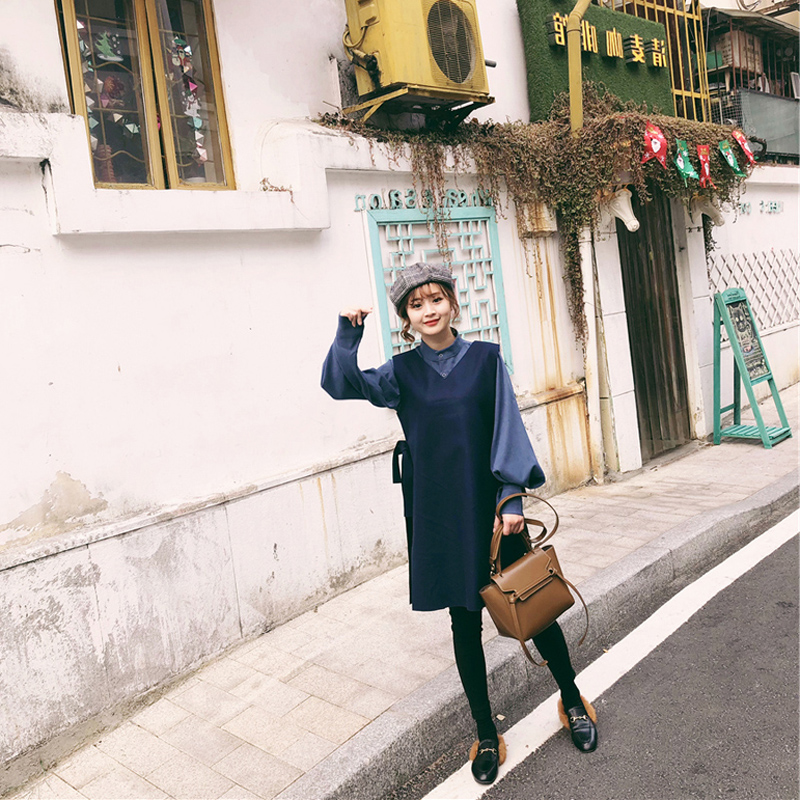 / 晚晚風復古襯衣配馬甲酷毛衣背心裙寬松裙子蹦迪網紅兩件套裝秋潮