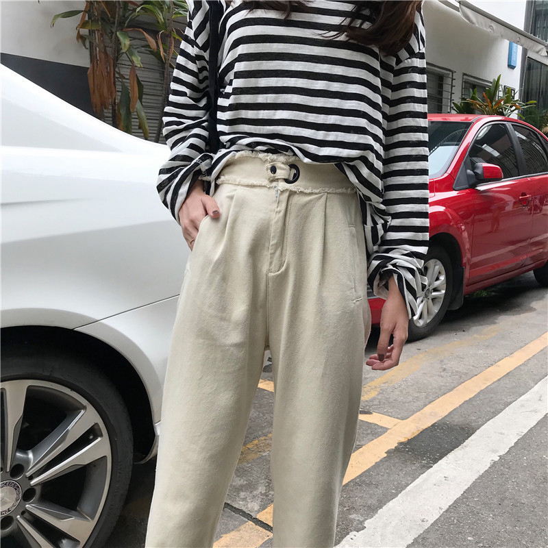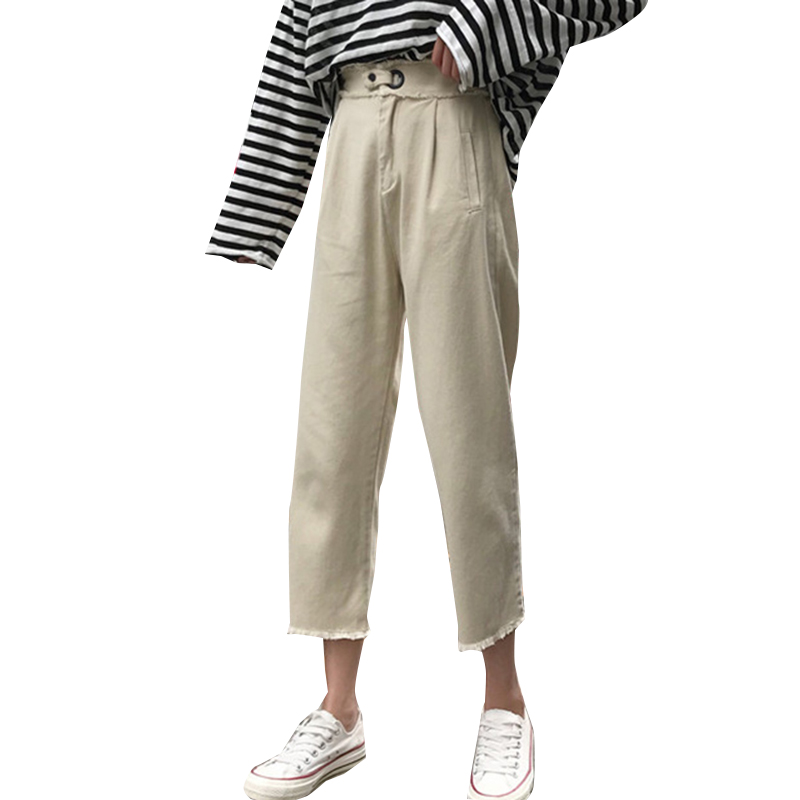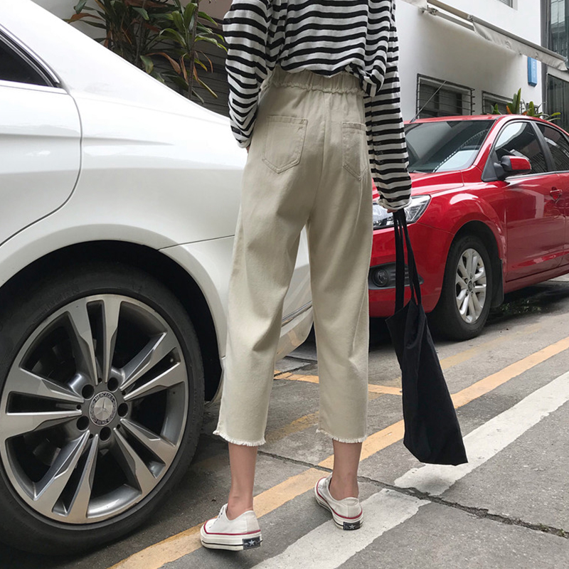 / 秋裝2018新款韓版原宿風學生寬松九分闊腿褲顯瘦高腰直筒牛仔褲女