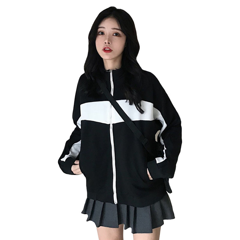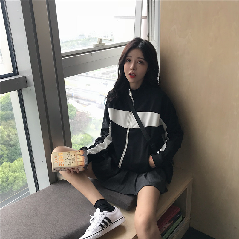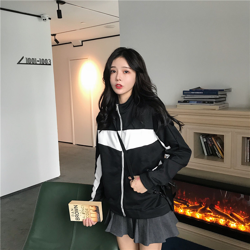 / 秋裝2018新款韓版復古運動風拼色學生寬松休閑長袖開衫上衣外套女