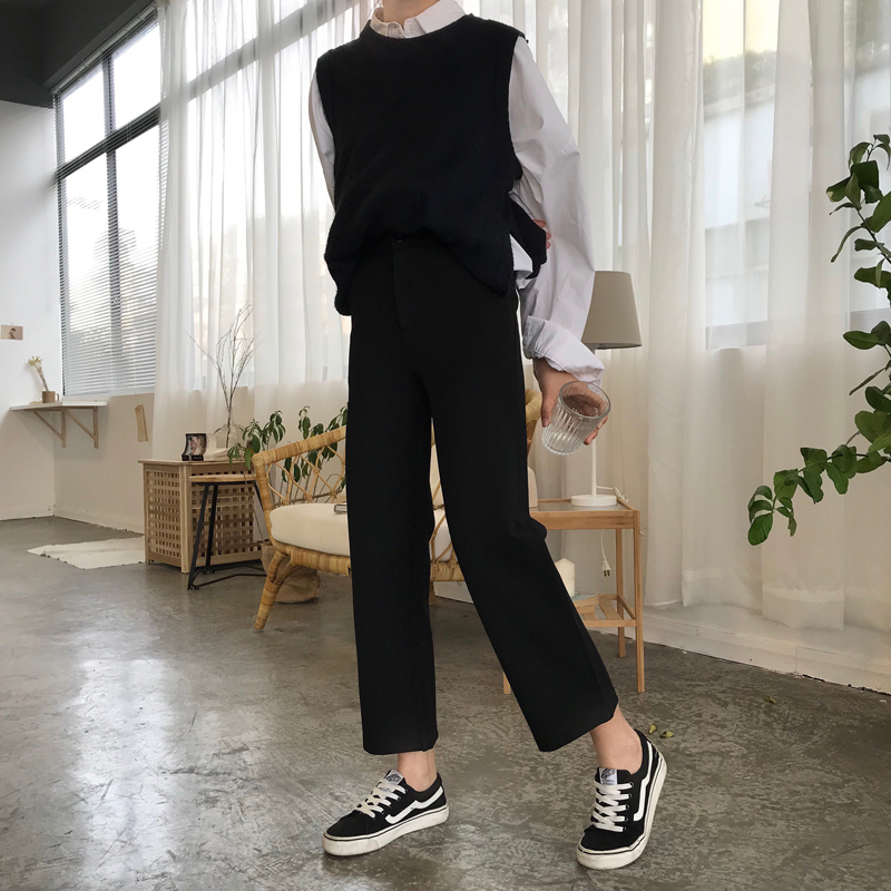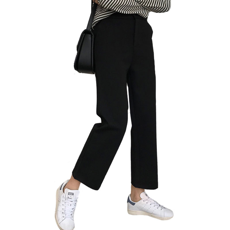 / 秋裝女裝韓版寬松顯瘦松緊腰高腰直筒褲九分褲休閑褲闊腿褲長褲潮
