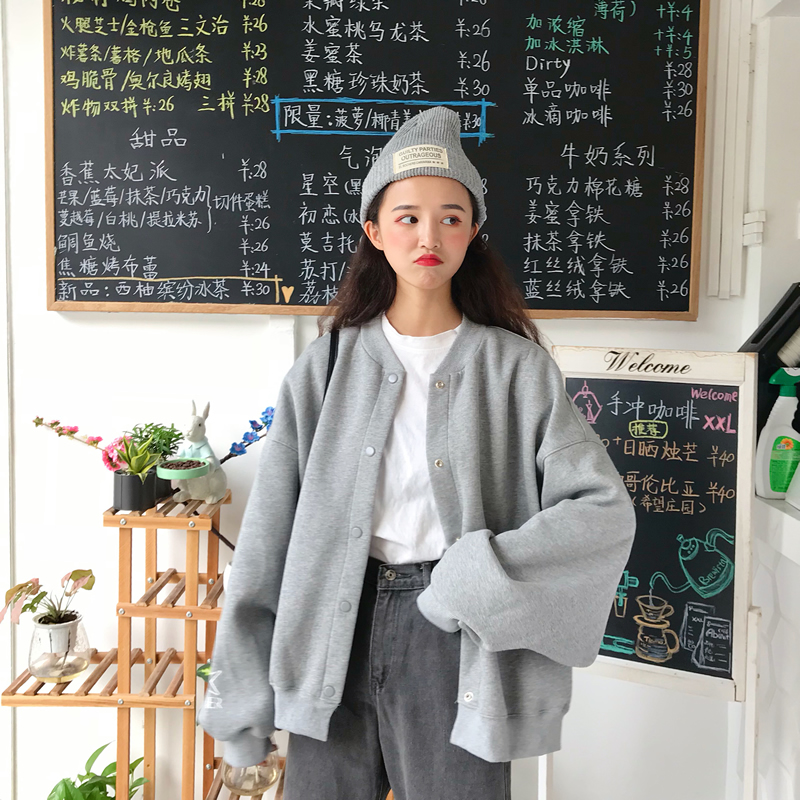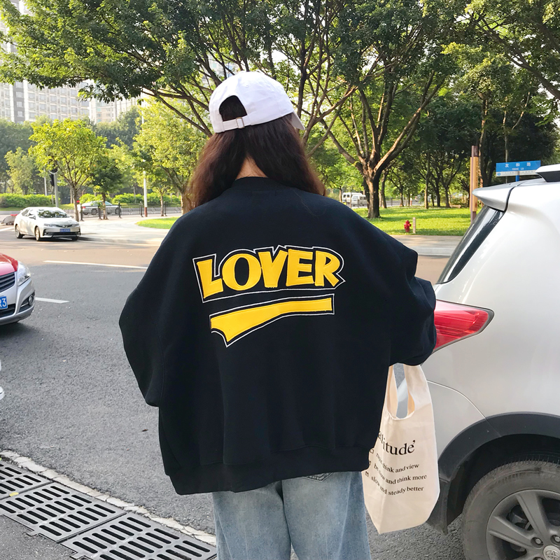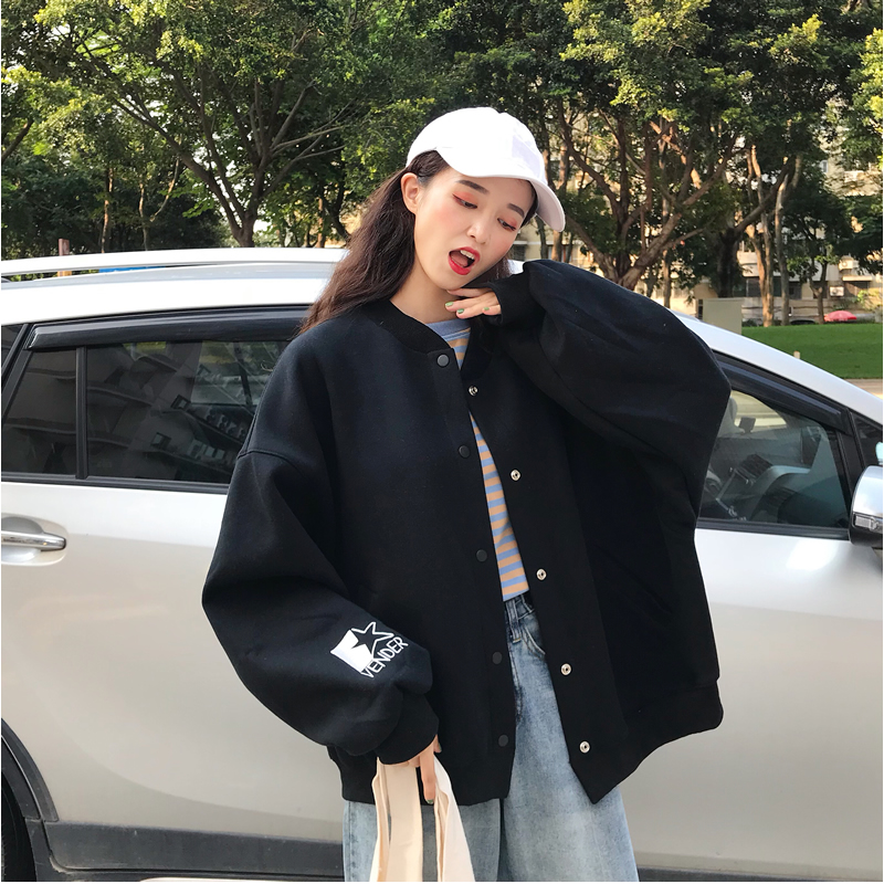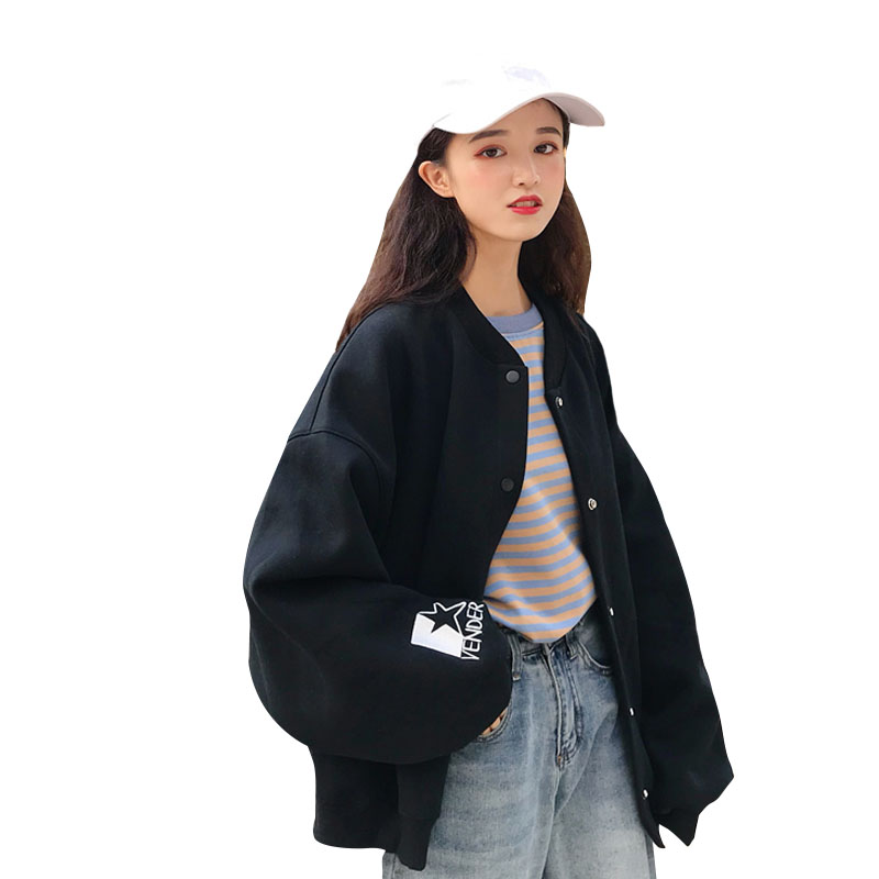 2018秋季新款韓版BF風寬松字母貼布繡花長袖棒球服開衫上衣外套女
