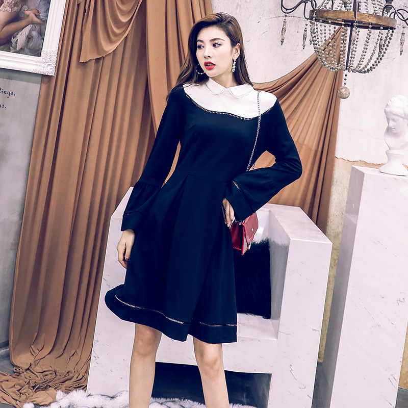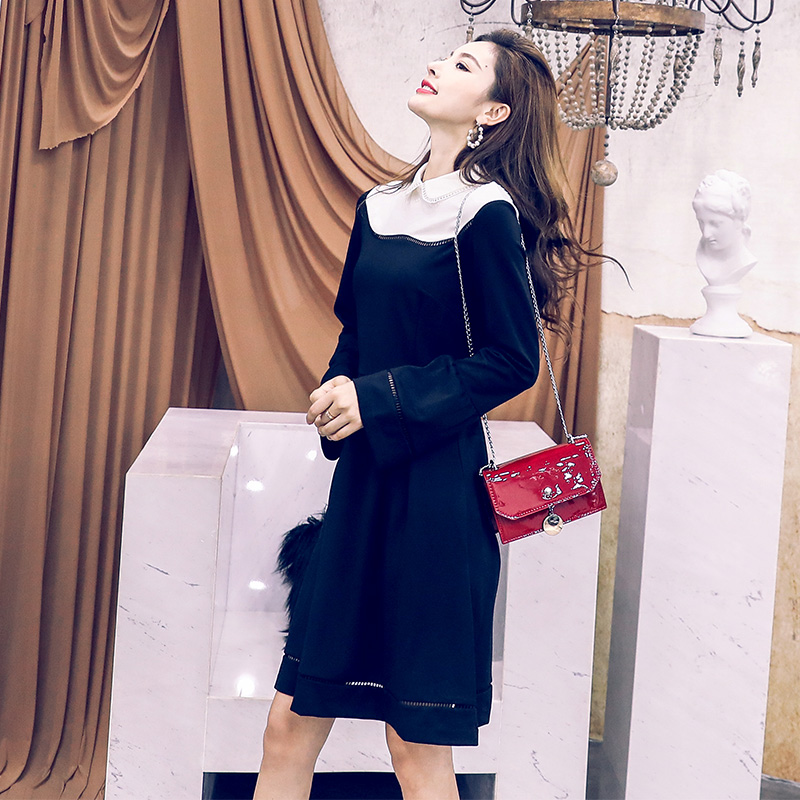 秋裝新款裙子2018女裝韓版性感高腰修身拼接名媛氣質公主連衣裙