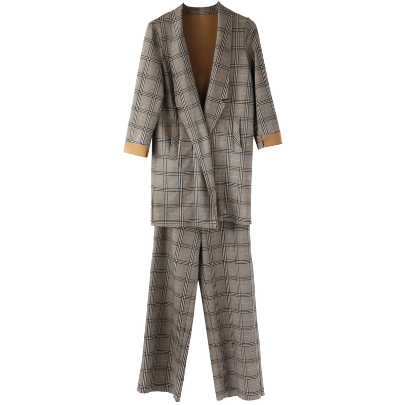 / 歐洲站2018秋季新款復古格子西裝外套寬松百搭長褲休閑闊腿褲套裝