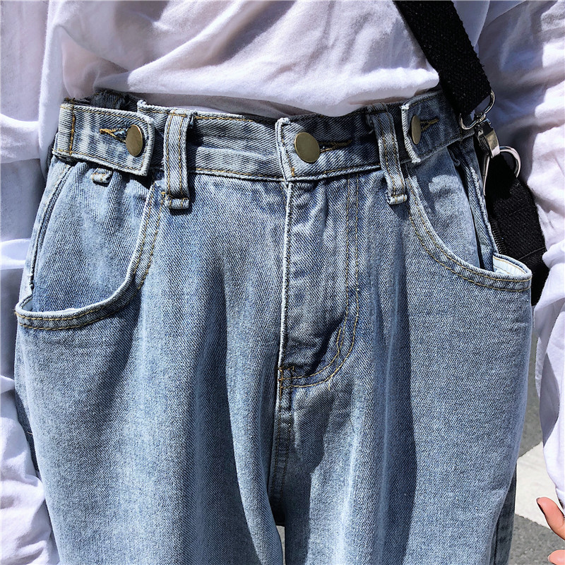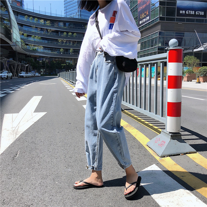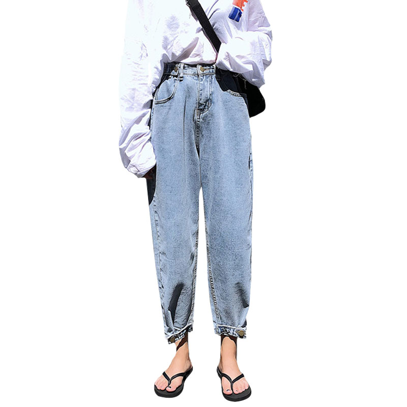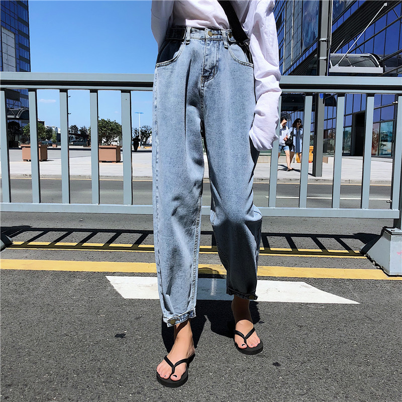 / 秋季女裝韓版水洗高腰顯瘦牛仔褲bf風寬松百搭直筒褲哈倫褲九分褲