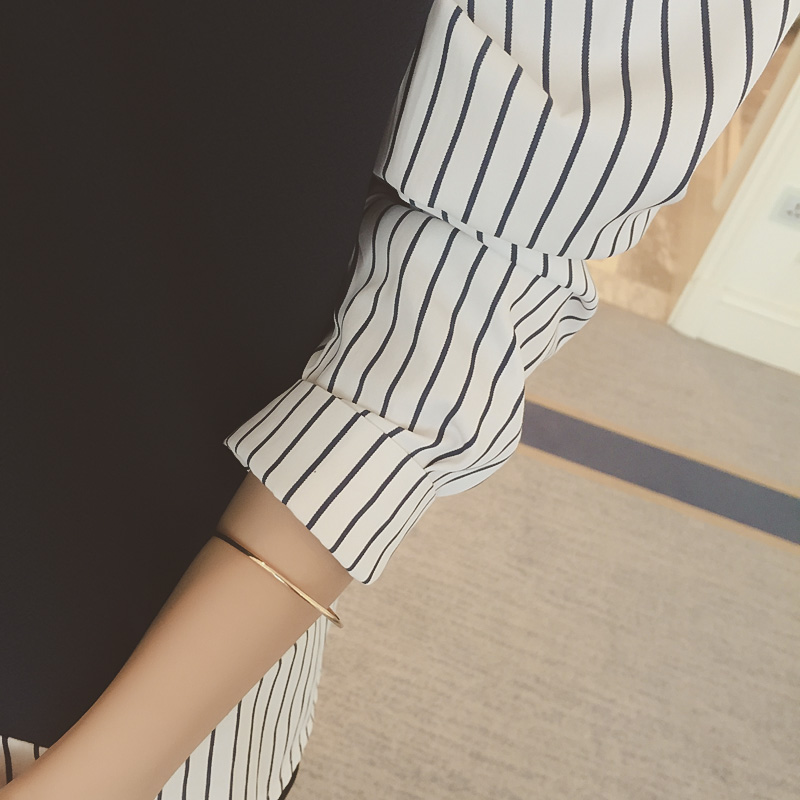 秋裝女2018新款韓版寬松條紋襯衫百搭長袖打底衫早秋假兩件套上衣