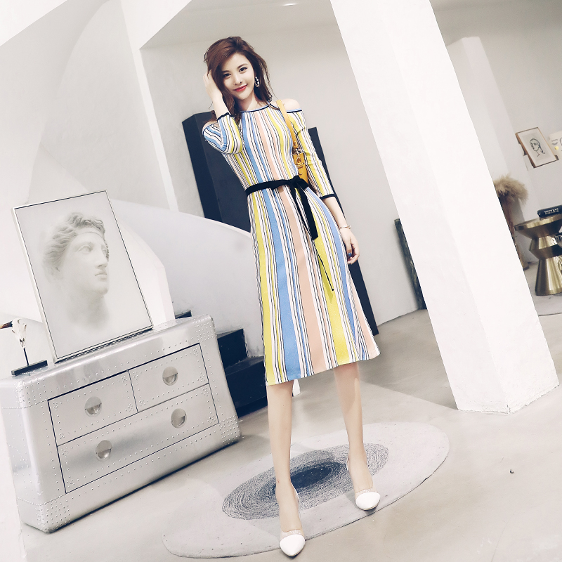 / 連衣裙女夏2018新款修身顯瘦露肩針織裙子慵懶風港味復古chic裙秋