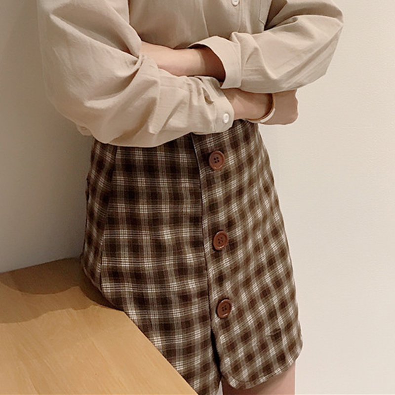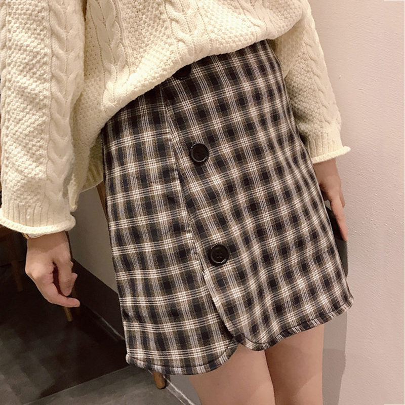 / 早秋2018新款女裝復古港風高腰格子半身裙學生休閑百搭A字短裙潮