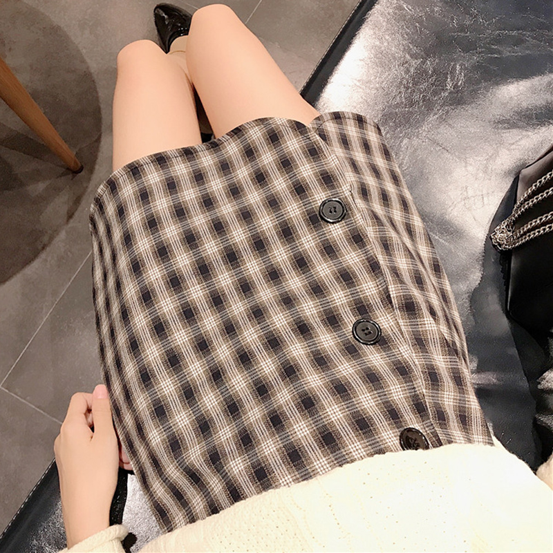 早秋2018新款女裝復古港風高腰格子半身裙學生休閑百搭A字短裙潮