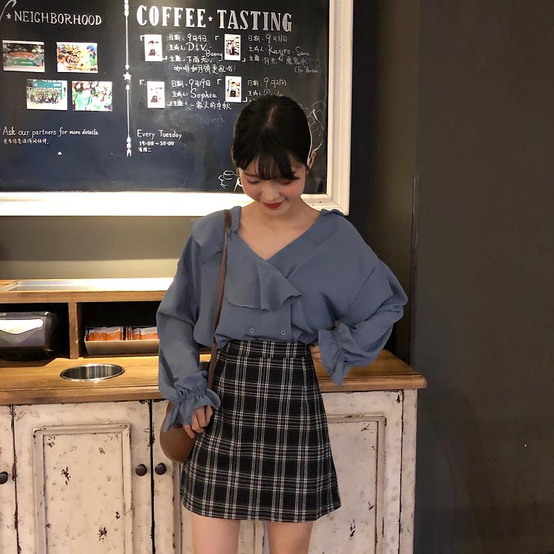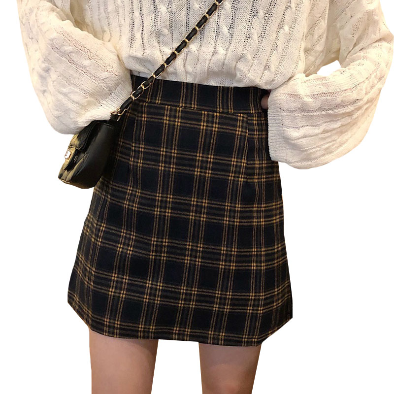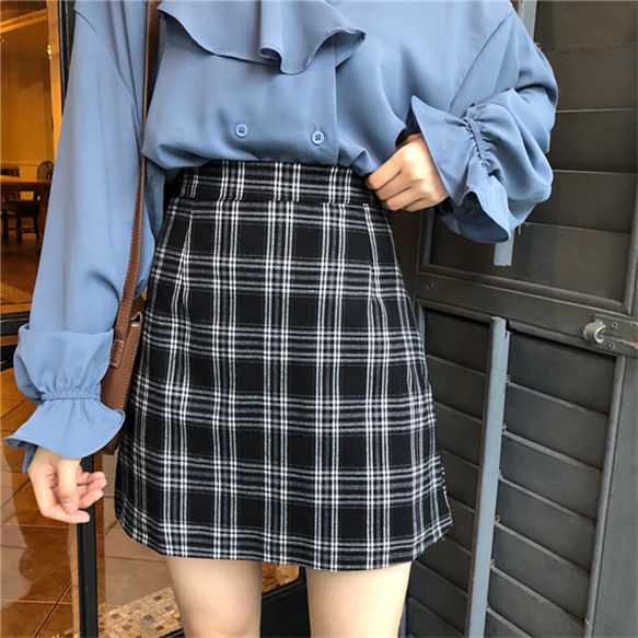 / 秋季女裝韓版chic港味復古格子短裙高腰A字包臀裙半身裙學生裙子
