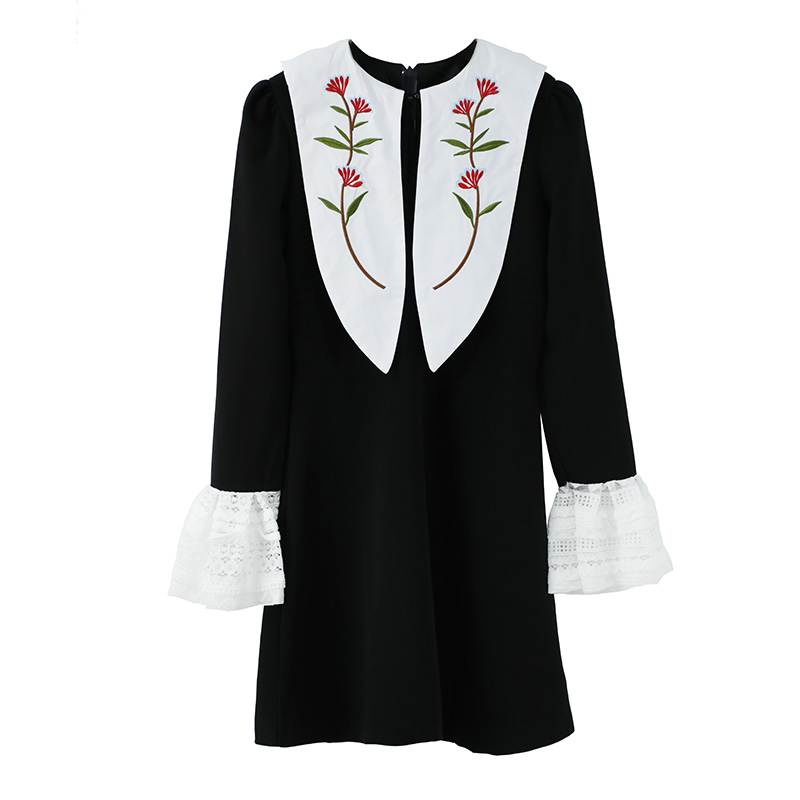 / 名媛復古連衣裙女秋裝2018新款收腰中長款長袖拼接網紅氣質裙子潮