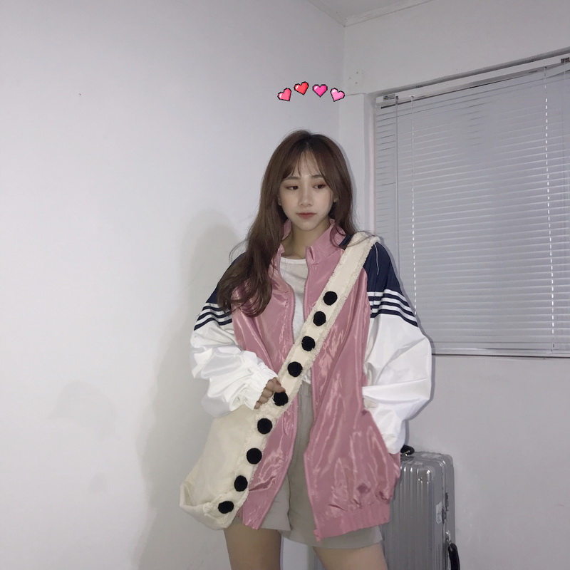 / 秋季女裝韓版撞色BF風寬松拉鏈長袖外套學生休閑夾克棒球服上衣潮
