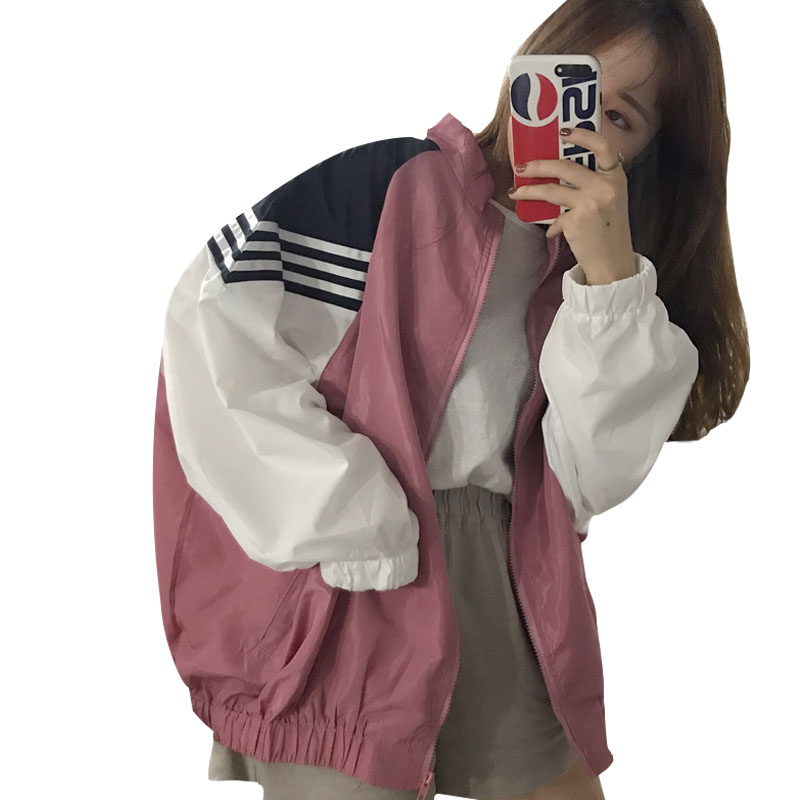 秋季女裝韓版撞色BF風寬松拉鏈長袖外套學生休閑夾克棒球服上衣潮