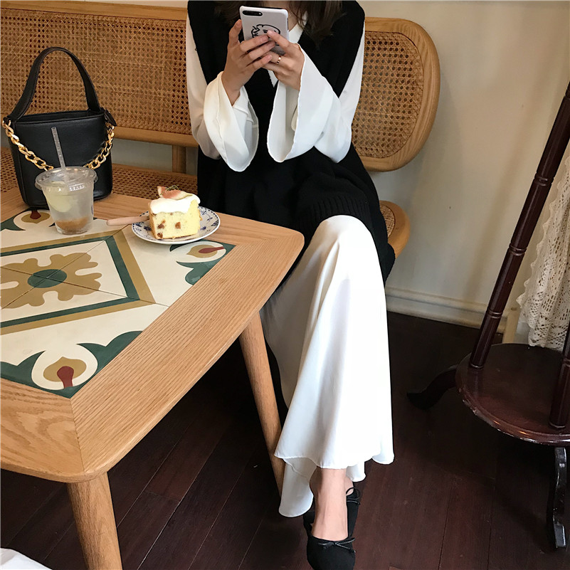 / 新款韓版秋季上衣女外穿復古chic時尚寬松V領前短后長馬甲針織衫
