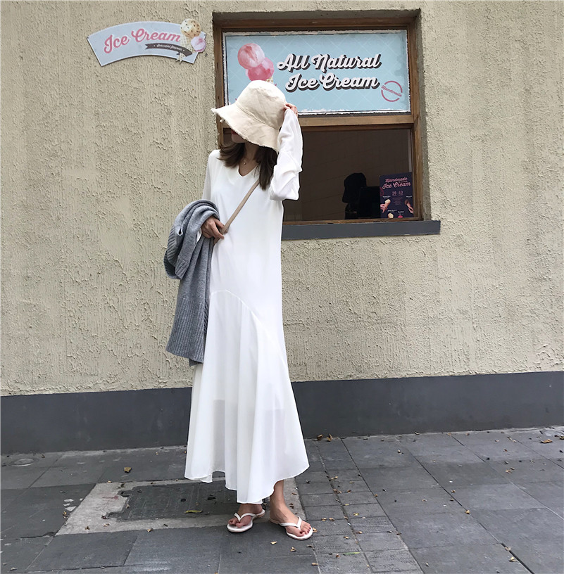 新款韓版秋季上衣女外穿復古chic時尚寬松V領前短后長馬甲針織衫