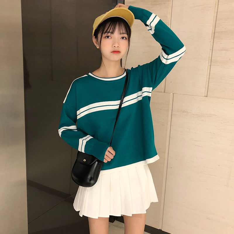 秋季女裝韓版學院風長袖套頭針織衫學生寬松百搭條紋顯瘦毛衣上衣