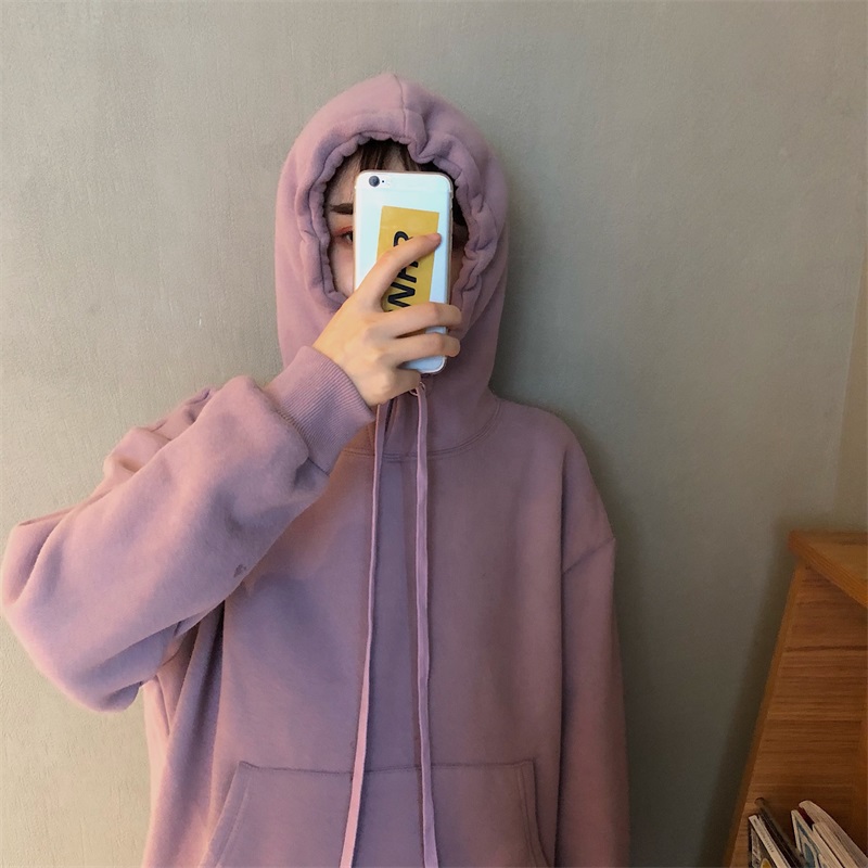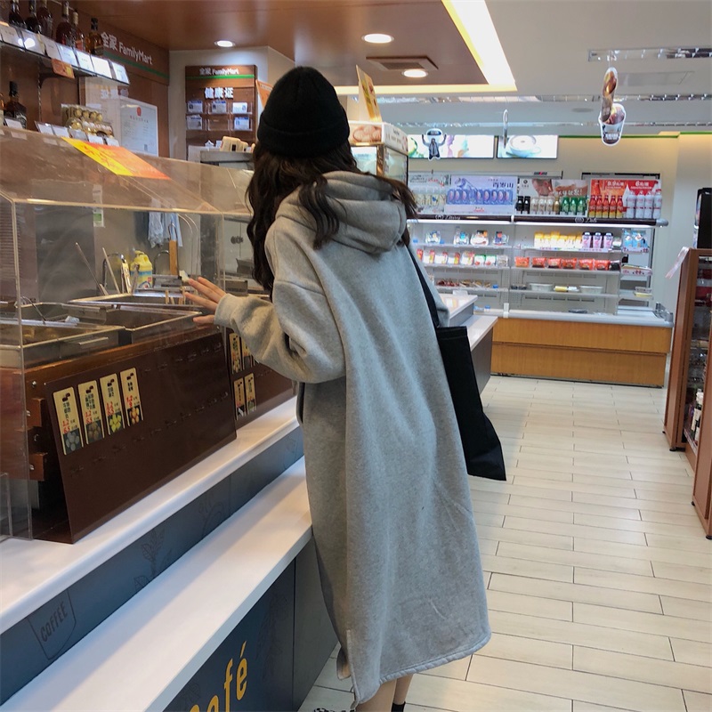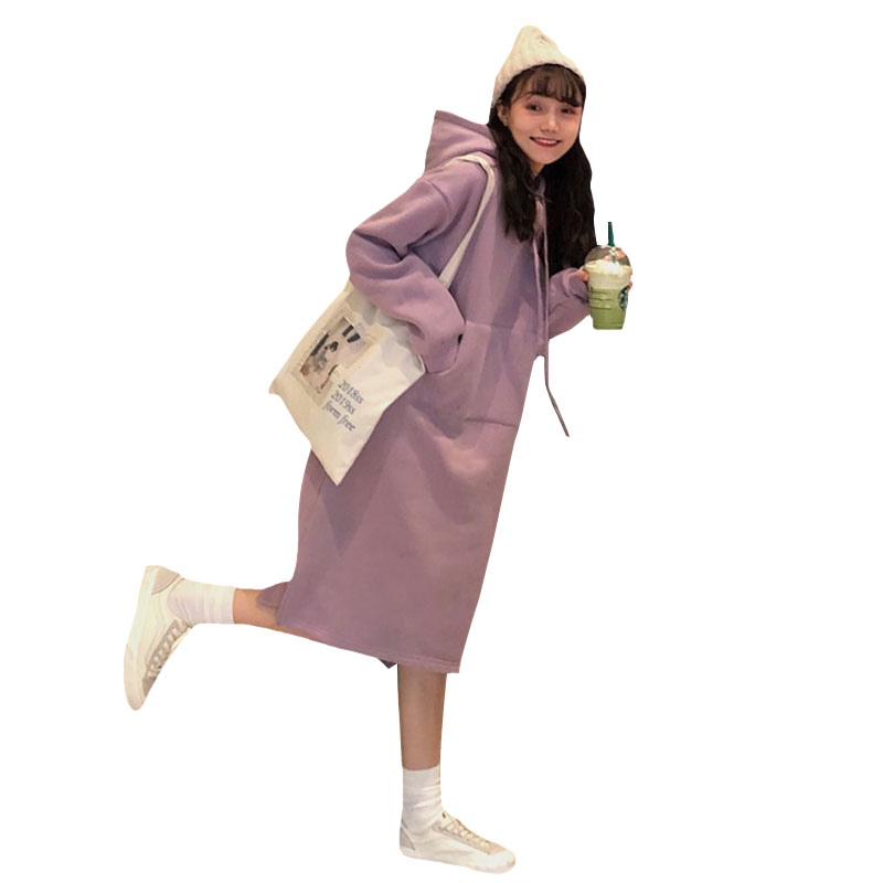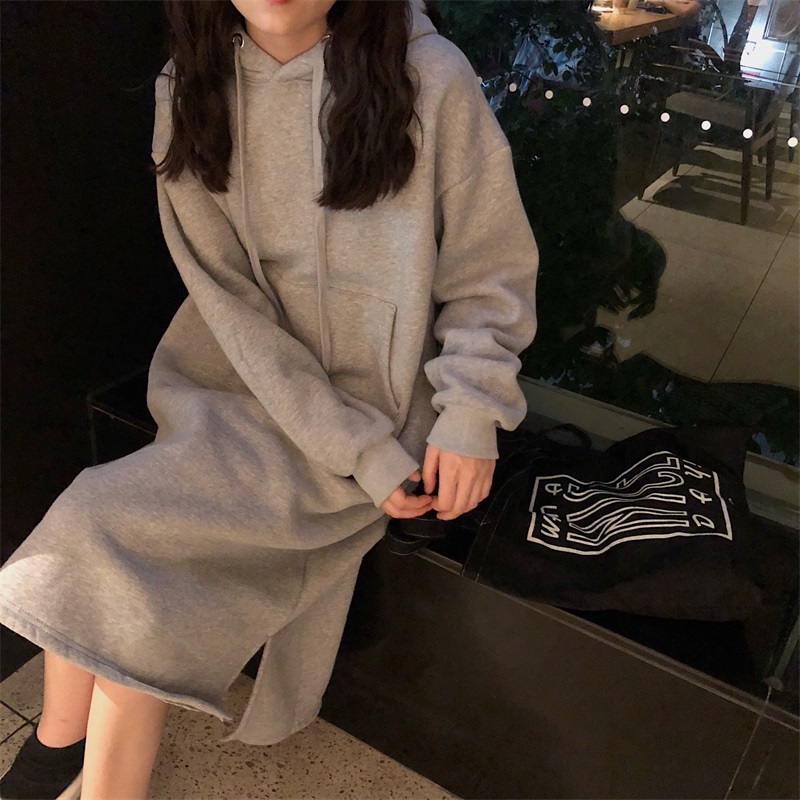 / 秋冬女裝韓版中長款加絨加厚保暖連帽套頭超火衛衣上衣連衣裙外套