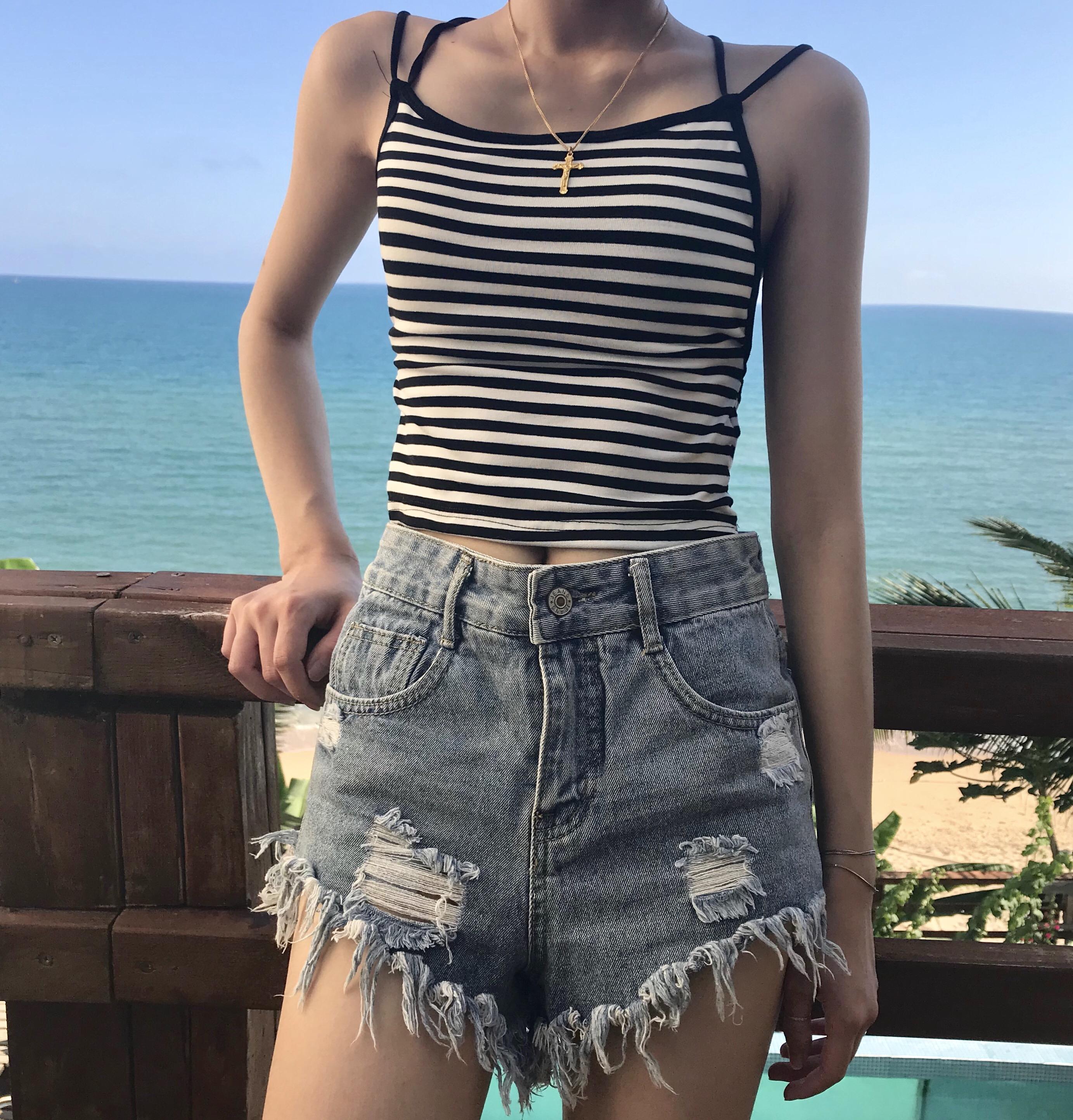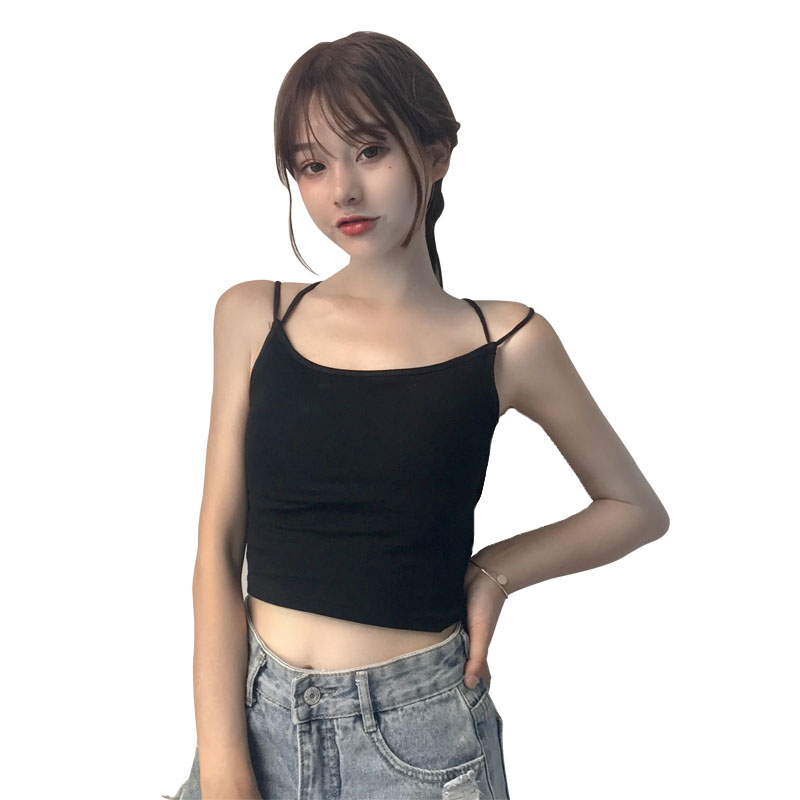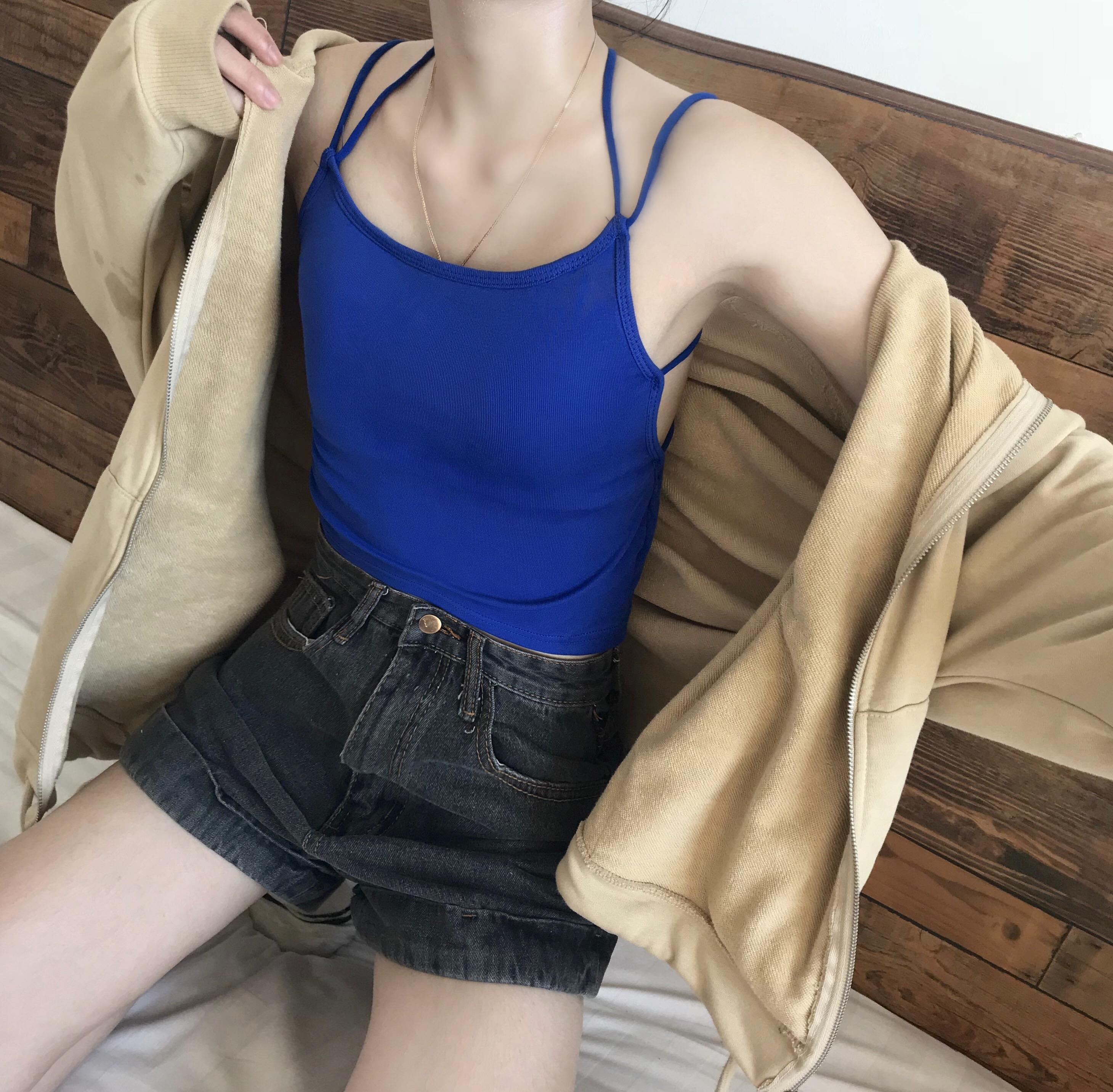 / 夏季女裝韓版交叉露背修身吊帶外穿打底美背小背心帶胸墊短款上衣