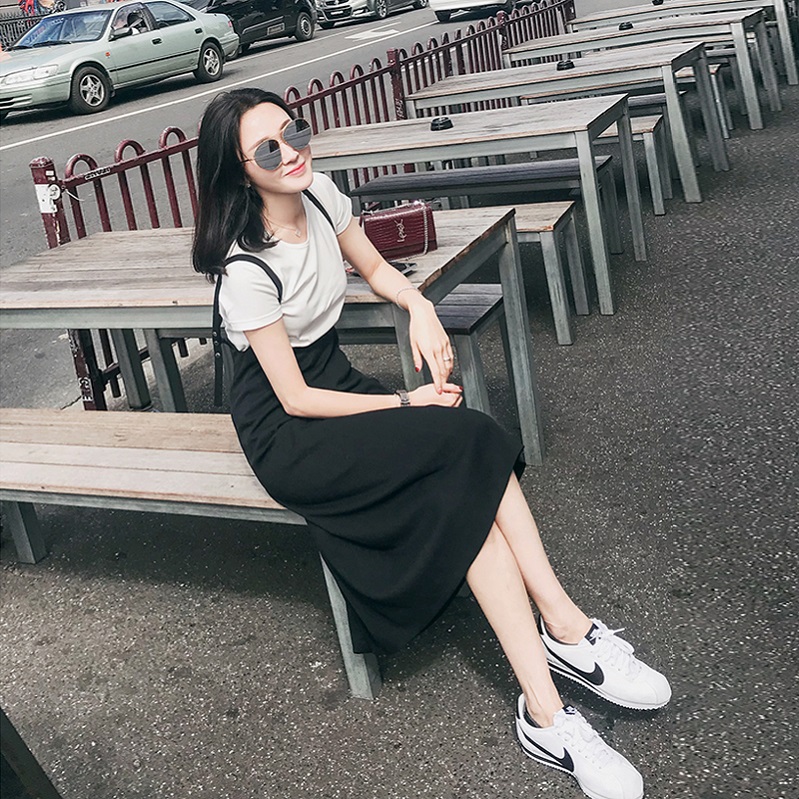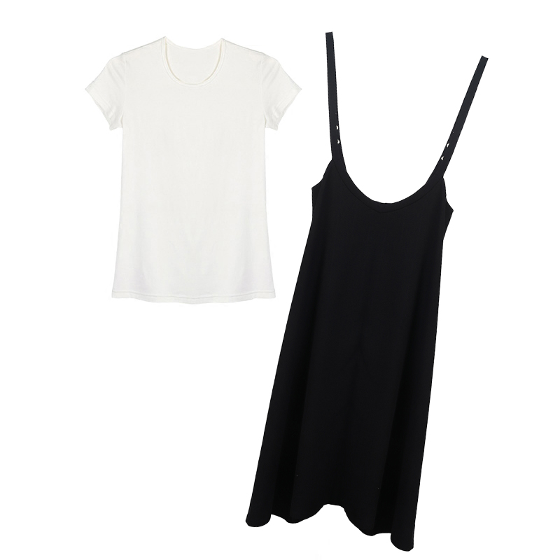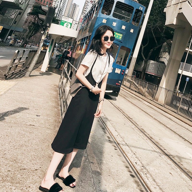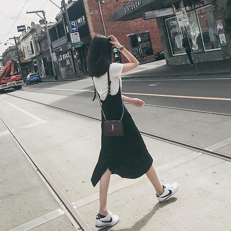 / 連衣裙女夏2018新款chic吊帶港味氣質小黑裙子溫柔風顯瘦兩件套裝
