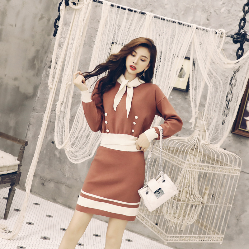 針織套裝2018新款名媛氣質chic套裙長袖上衣半身包臀裙時尚兩件套