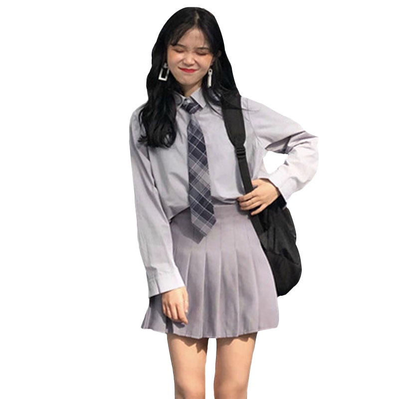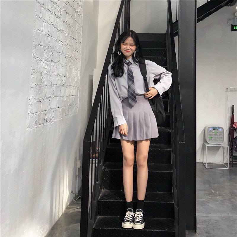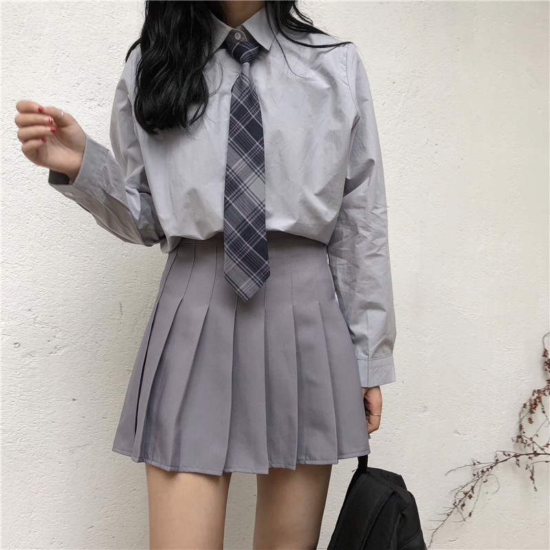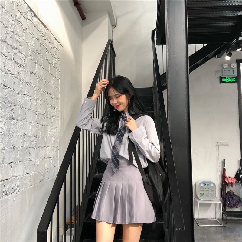 / 韓版時尚休閑套裝夏季長袖翻領襯衫+高腰百褶半身裙短裙兩件套女