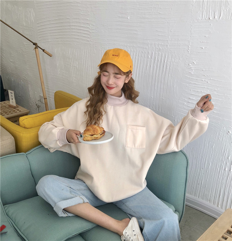 / 秋冬女裝韓版BF風寬松撞色pp home加絨加厚套頭超火衛衣上衣外套