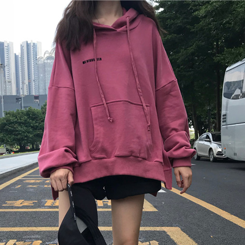 秋裝女2018新款韓版學生寬松長袖連帽衛衣少女慵懶灰色字母上衣潮