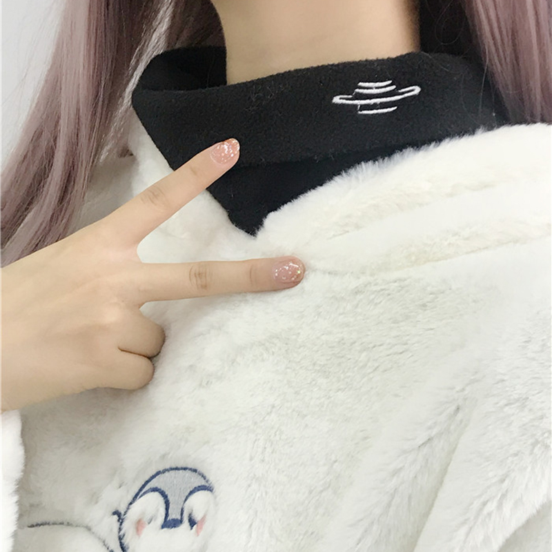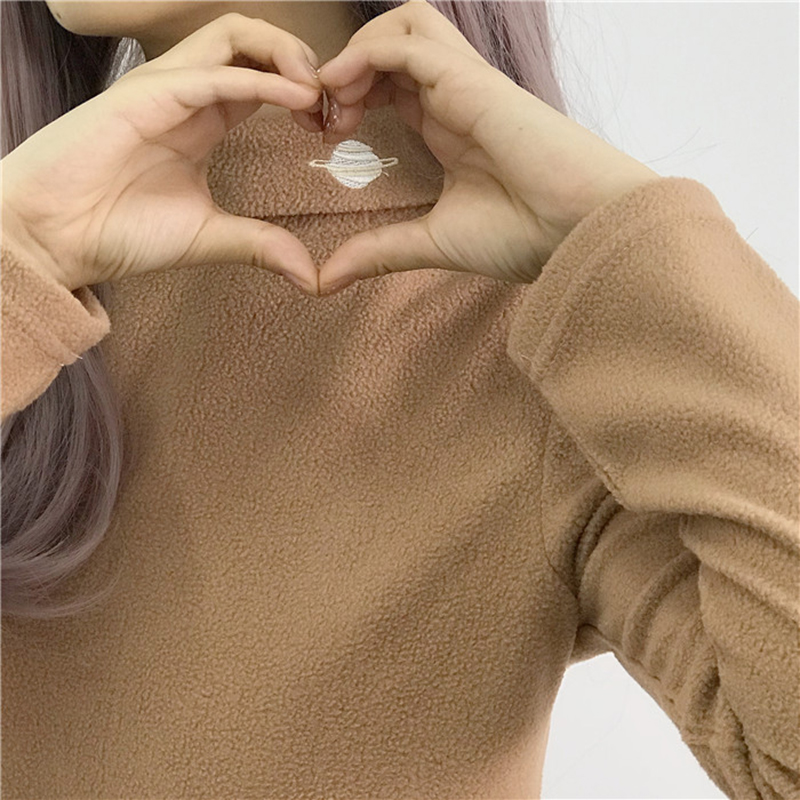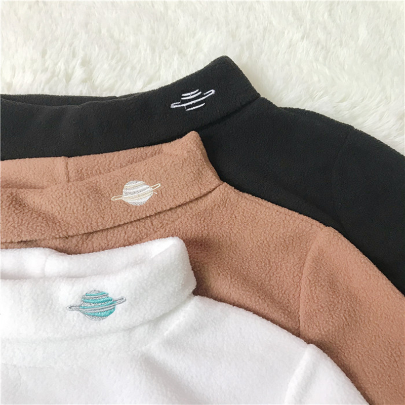 / 學生毛絨卡通刺繡上衣秋裝女2018新款韓版修身休閑半高領長袖T恤