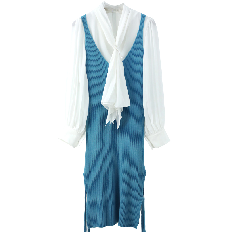 2018新款背心裙子秋季兩件套裙氣質針織套裝背帶連衣裙秋裝女