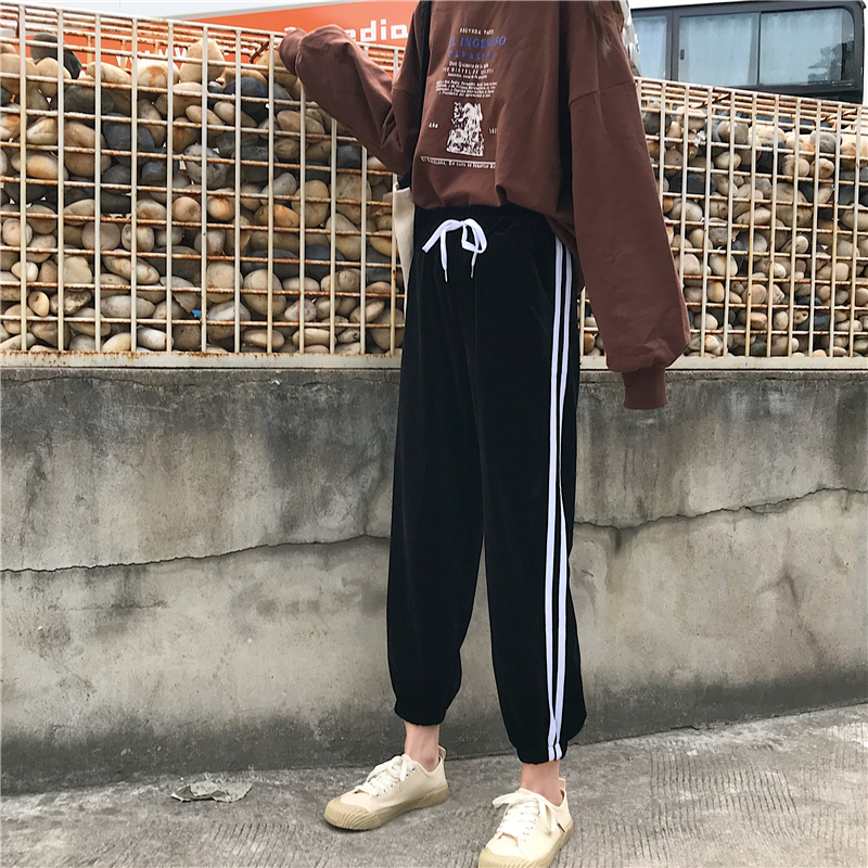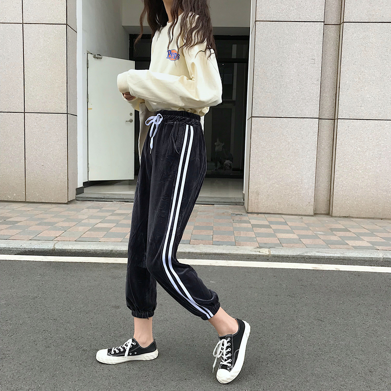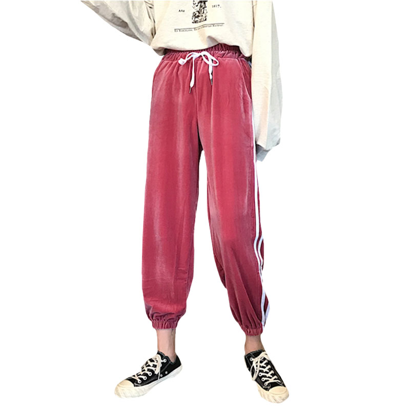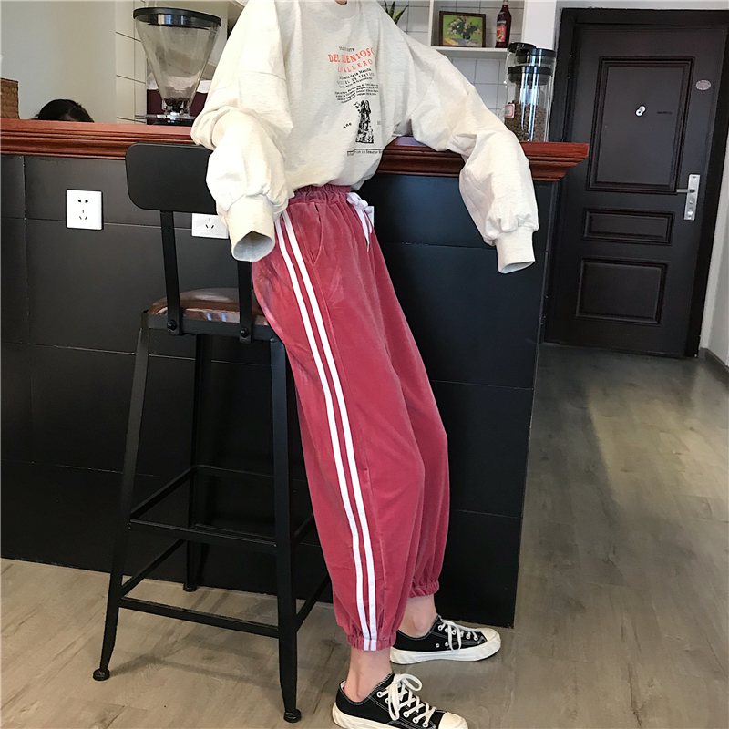 / 秋季女裝韓版寬松金絲絨束腳褲松緊腰運動褲休閑褲哈倫褲學生褲子