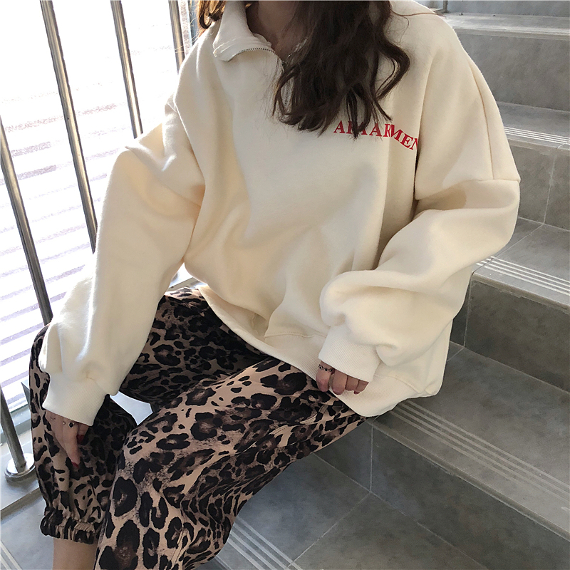 秋冬韓版原宿風寬松字母拉鏈翻領加絨加厚套頭超火衛衣上衣外套女