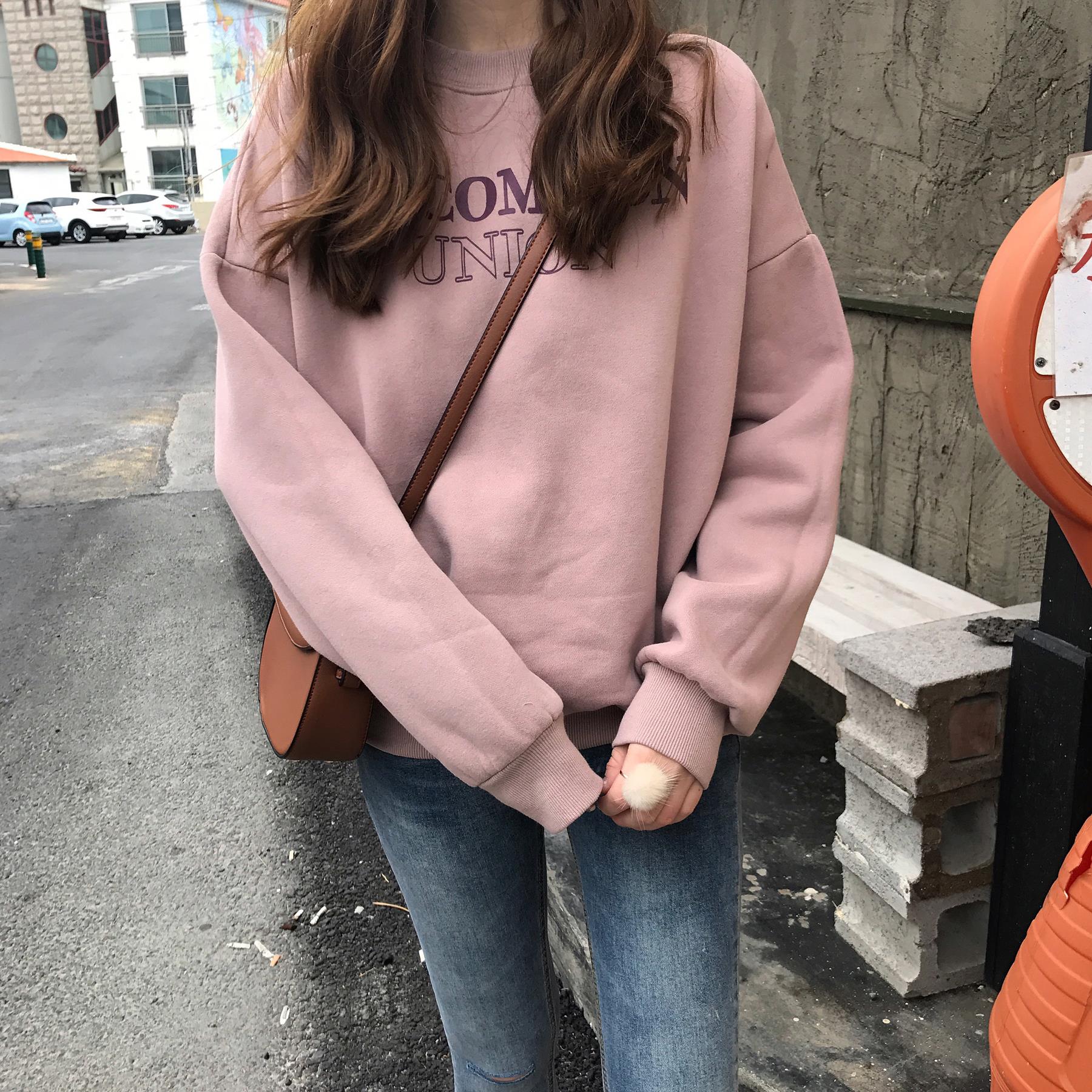 / 秋冬韓版chic學院風加絨BF風寬松長袖pp home超火衛衣上衣外套女