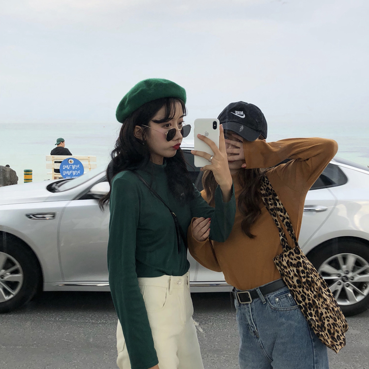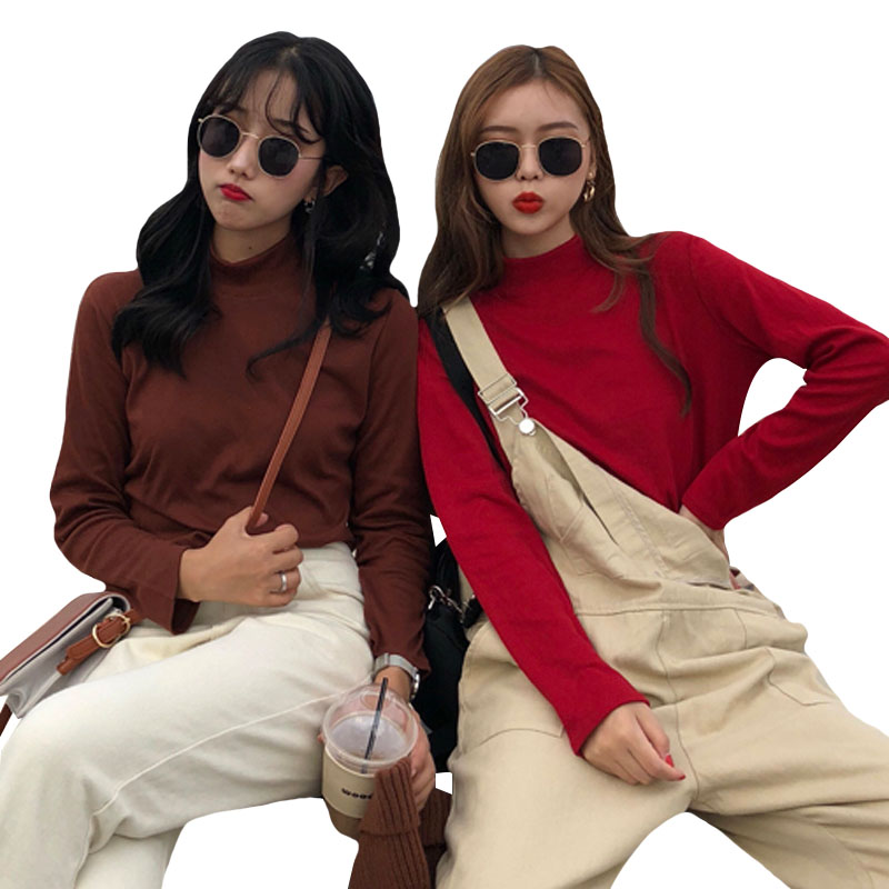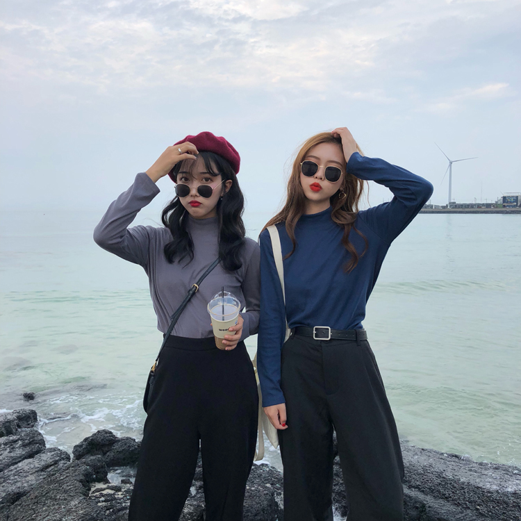 / 秋季女裝韓版基礎款純色半高領修身打底衫長袖T恤顯瘦上衣學生潮