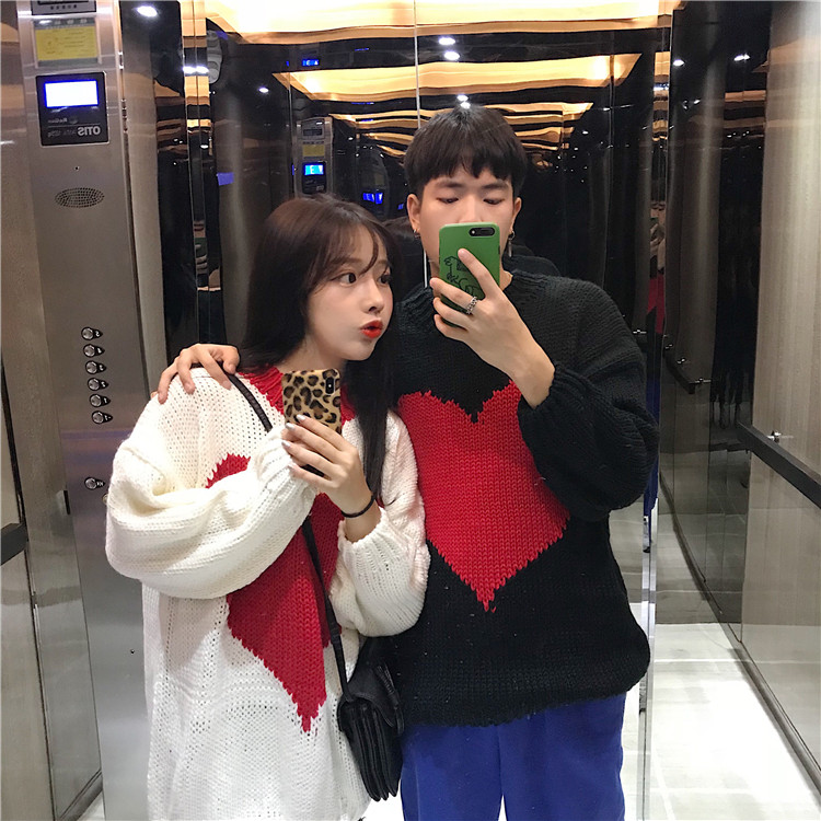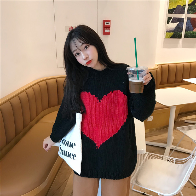 / 秋冬韓版寬松慵懶風休閑愛心情侶款網紅套頭針織衫毛衣上衣外套女