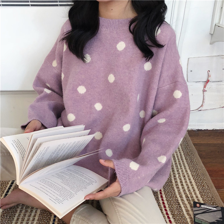 / 秋冬韓版慵懶風chic小清新波點寬松網紅套頭毛衣針織衫上衣外套女