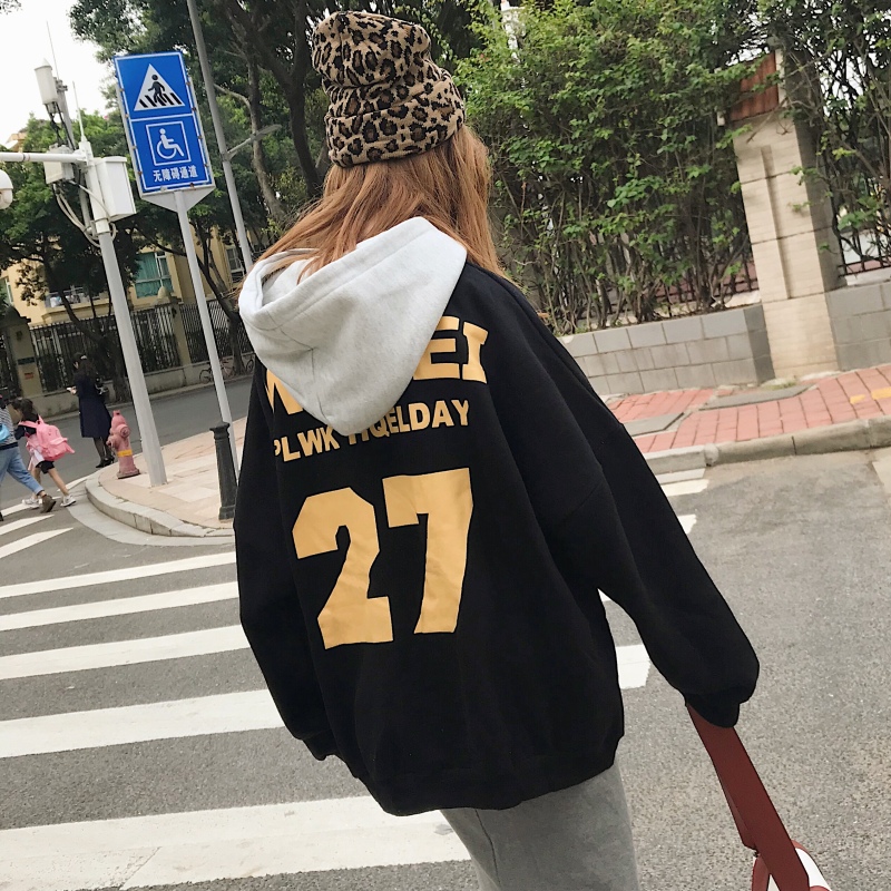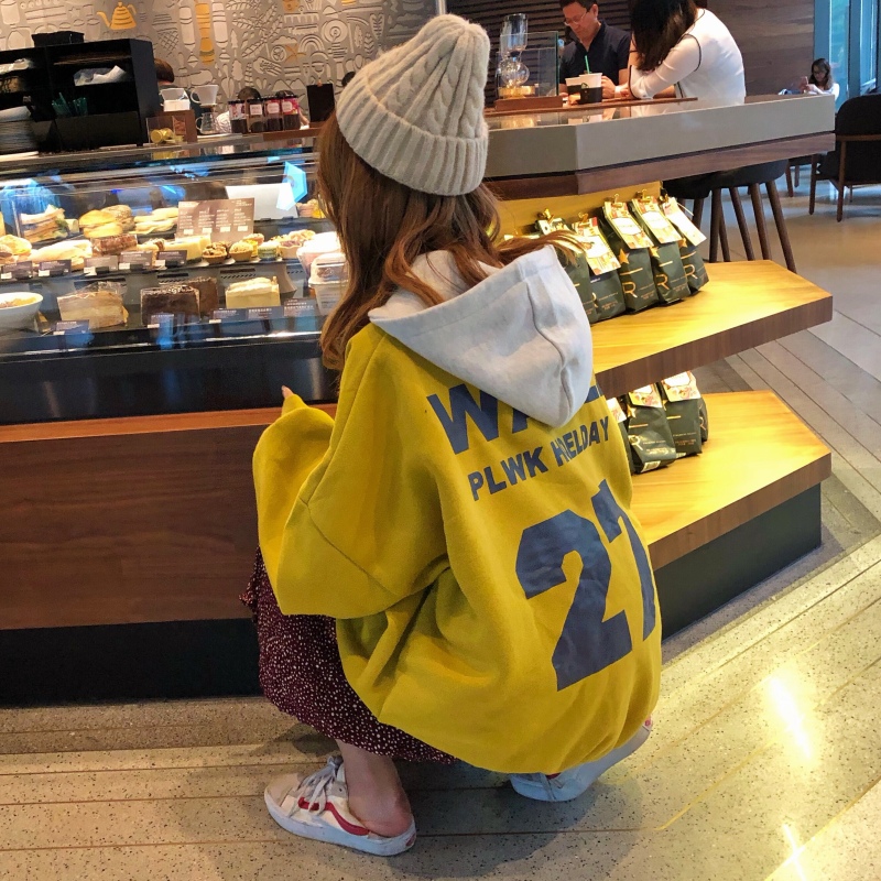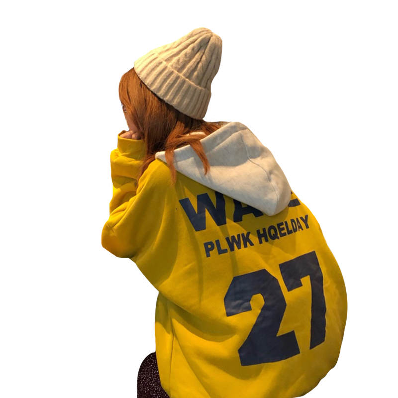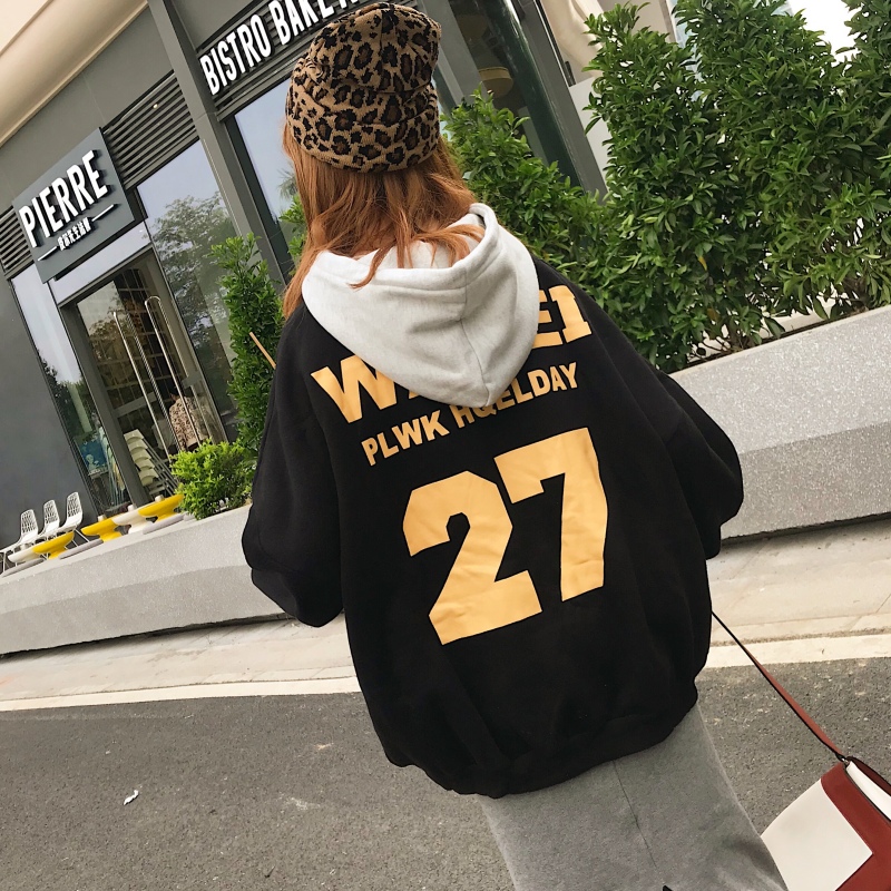 秋冬女裝韓版原宿風字母慵懶風寬松連帽加厚加絨套頭衛衣上衣外套