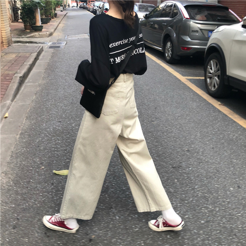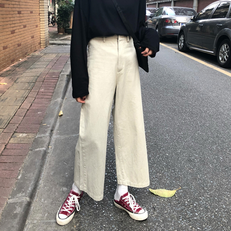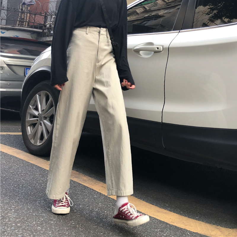 韓版休閑闊腿褲女學生2018秋裝新款高腰寬松顯瘦黑色直筒褲長褲子