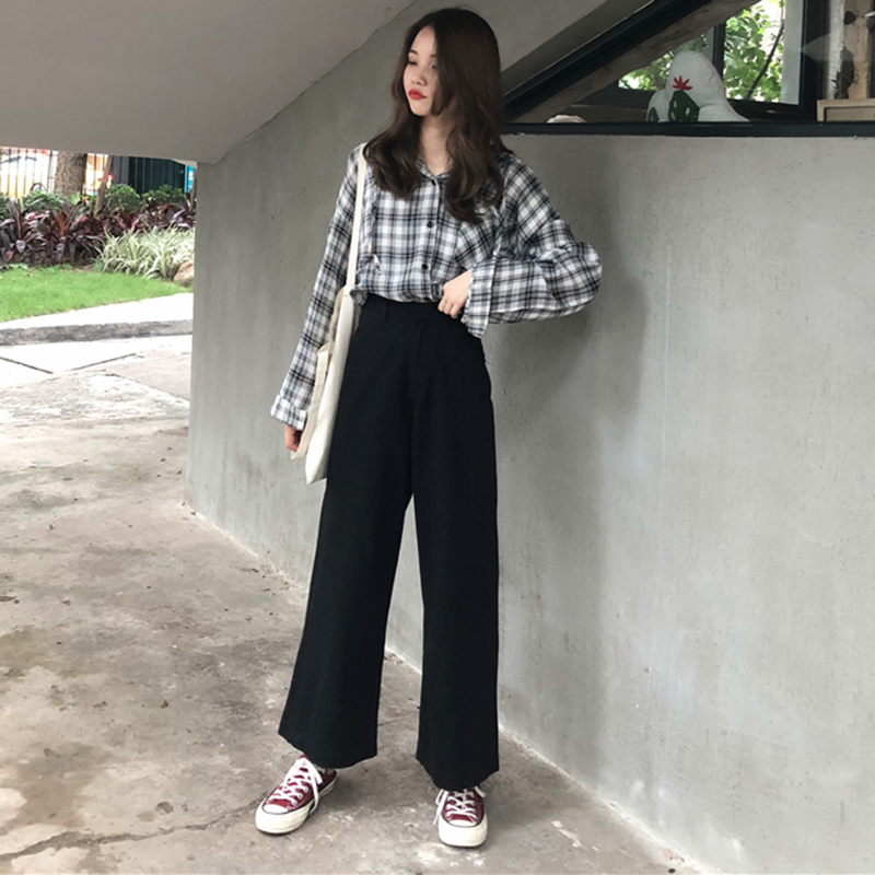 / 韓版休閑闊腿褲女學生2018秋裝新款高腰寬松顯瘦黑色直筒褲長褲子