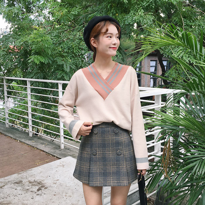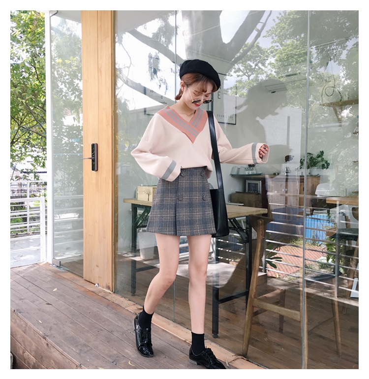 / 秋冬女裝韓版寬松復古格子毛呢加厚A字裙高腰半身裙短裙學生裙子