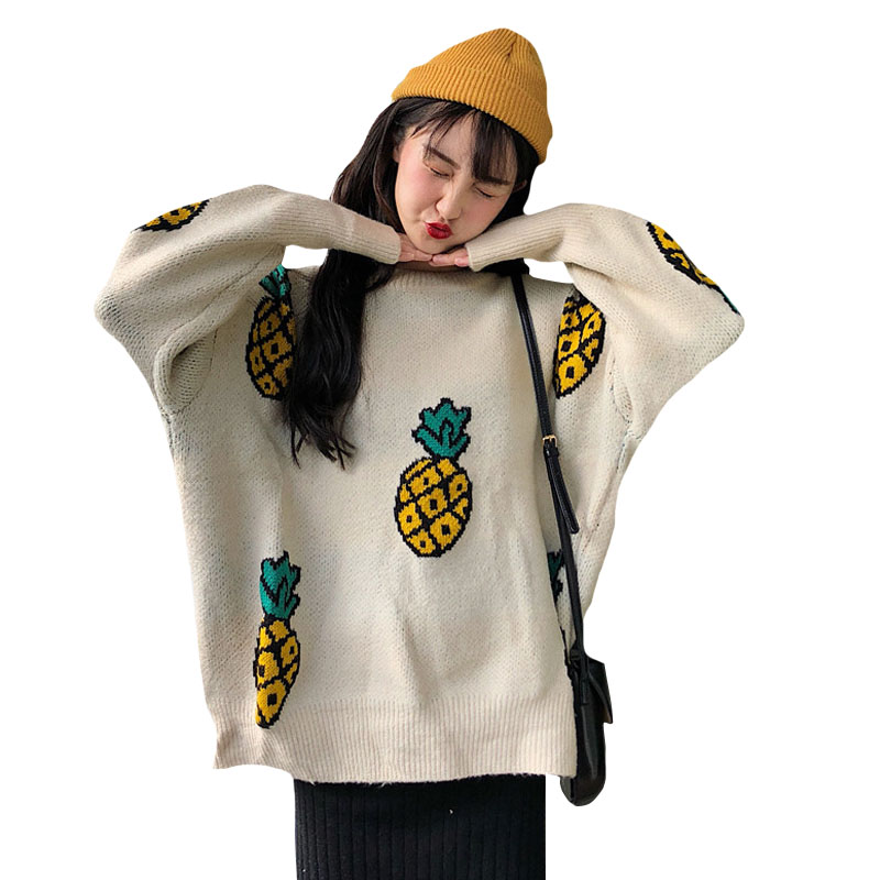 / 秋冬韓版寬松慵懶風小清新菠蘿套頭網紅超火針織衫毛衣上衣外套女