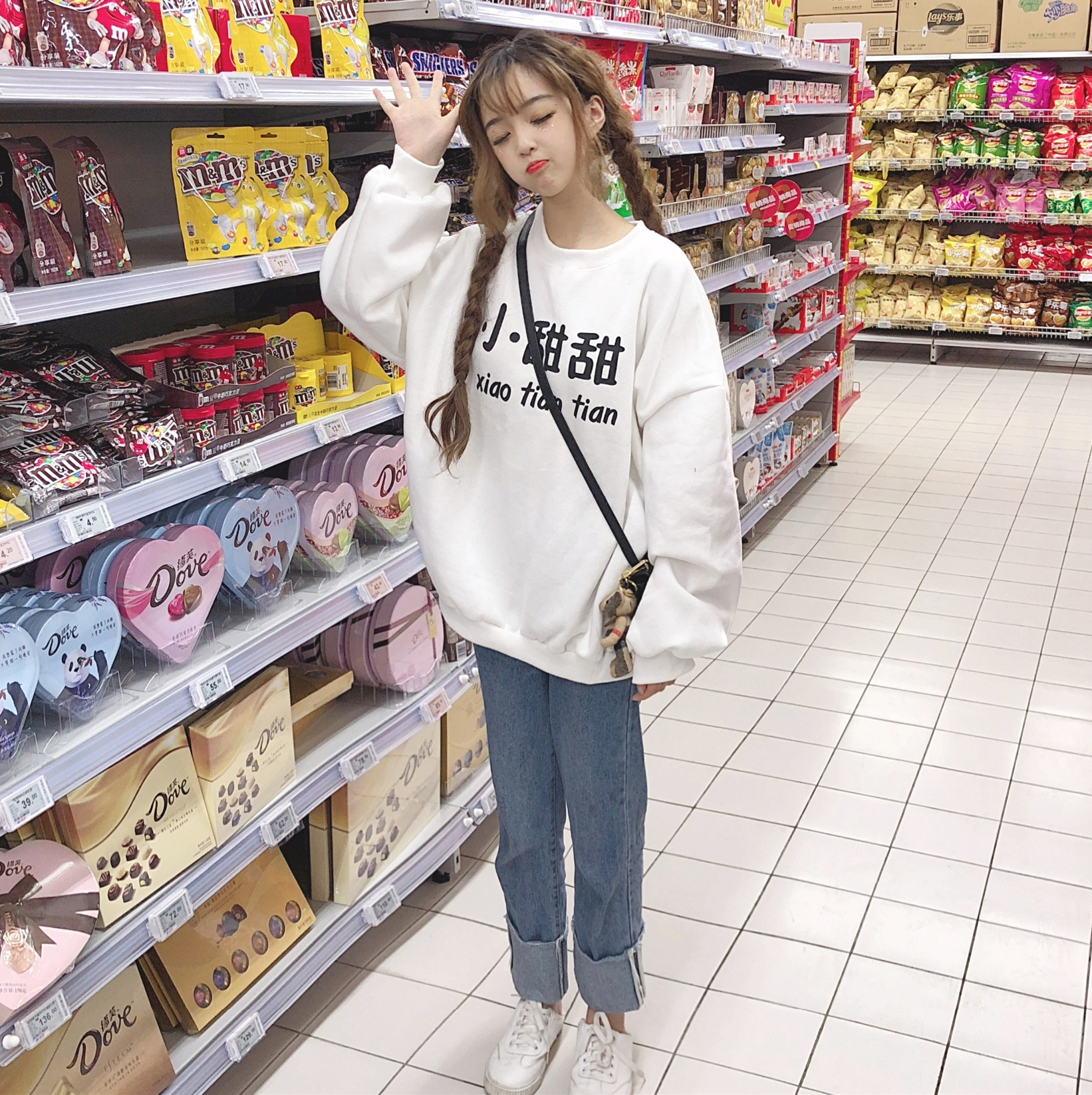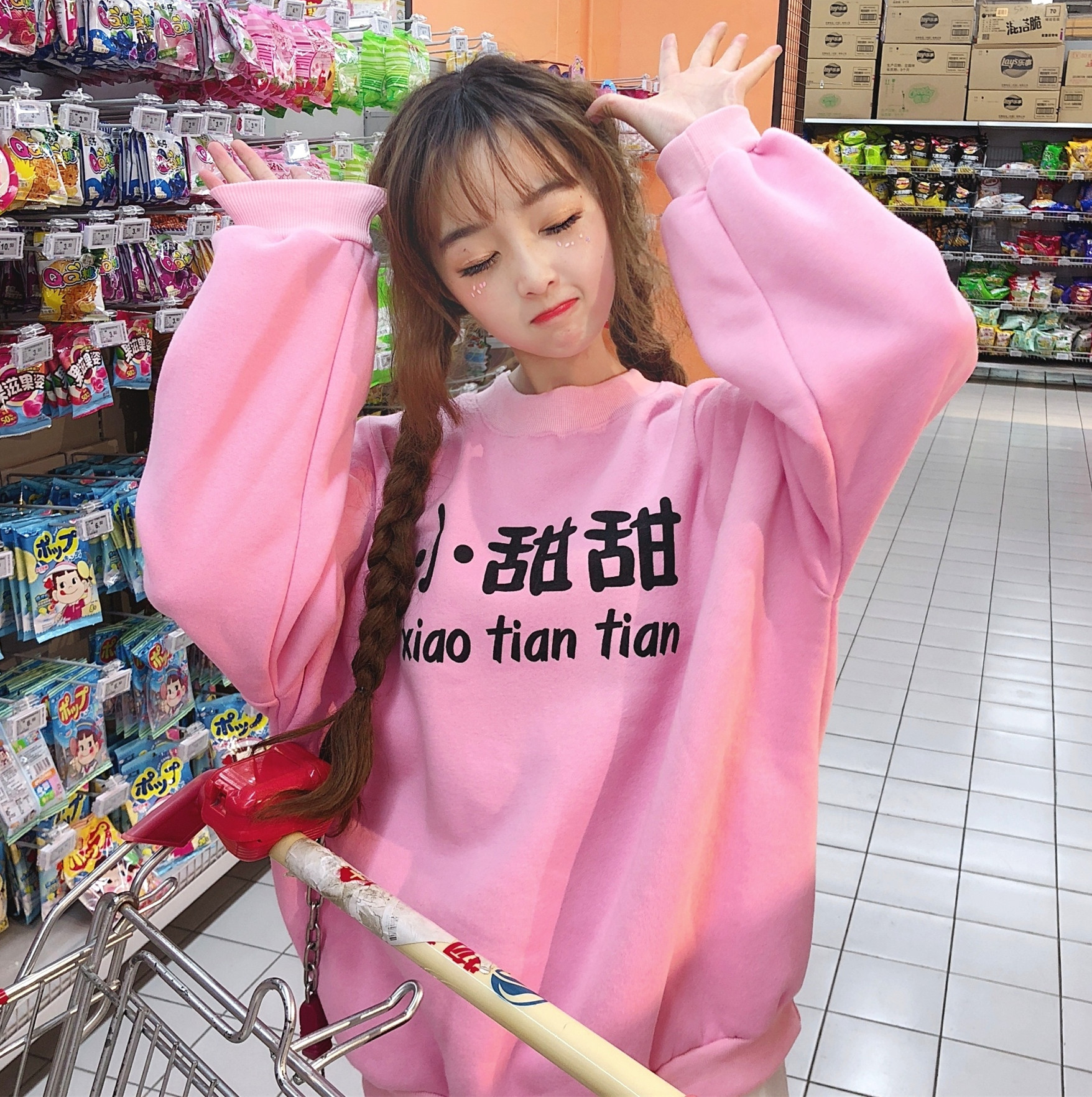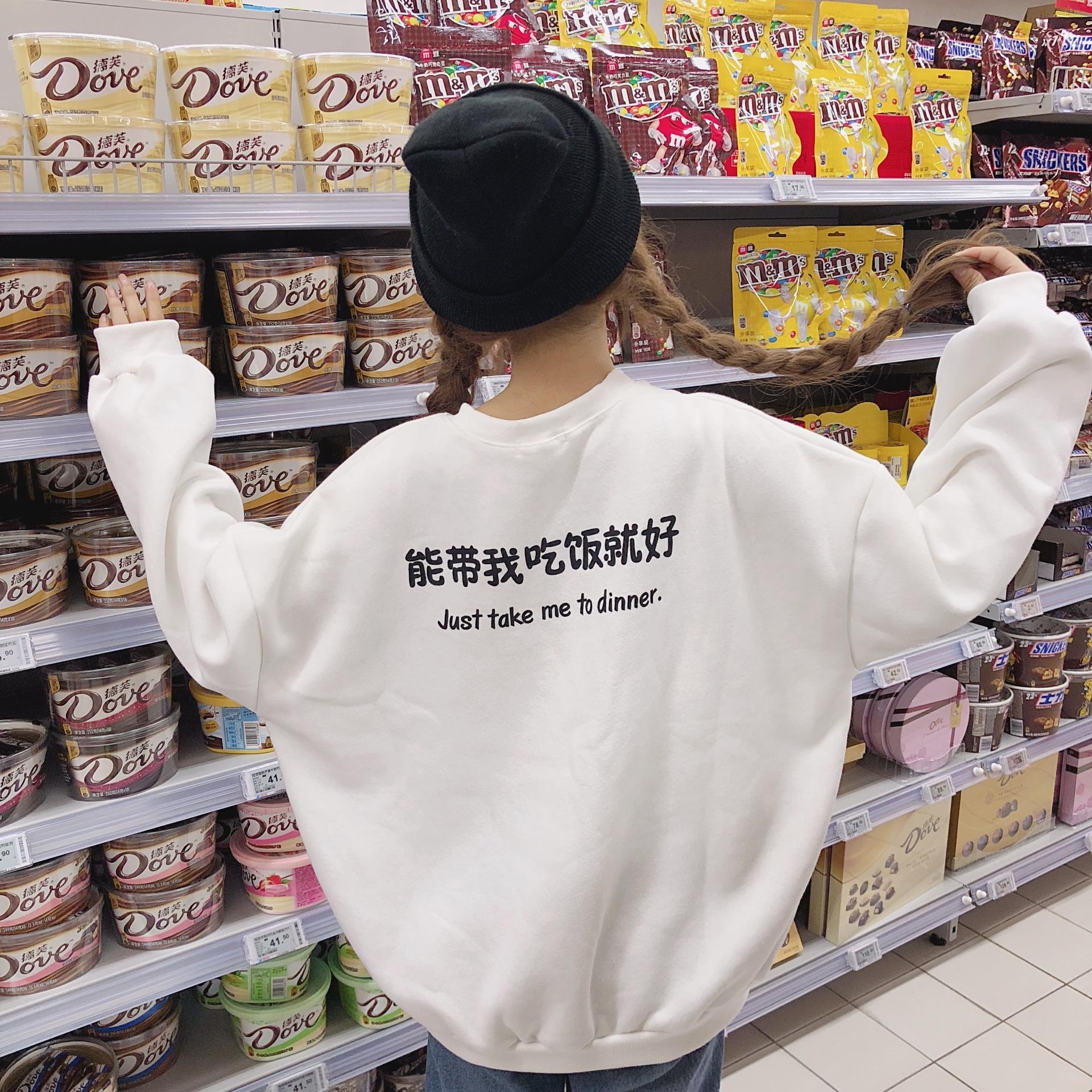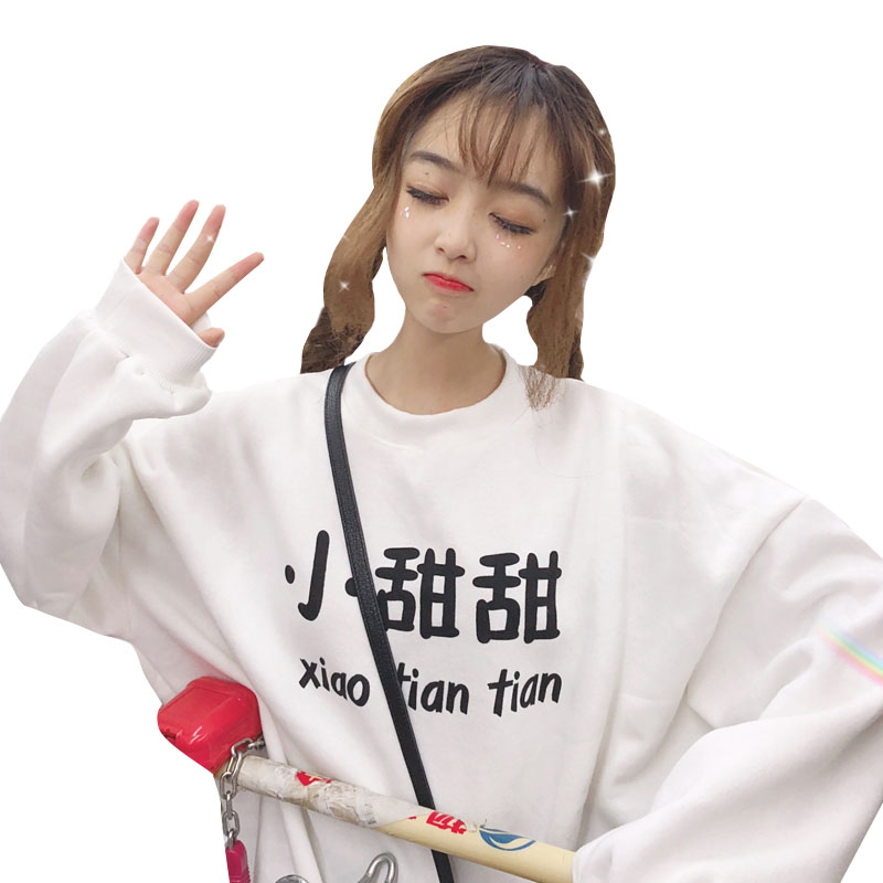 / 秋冬女裝韓版中長款學院風加絨加厚BF風寬松可愛套頭超火衛衣外套