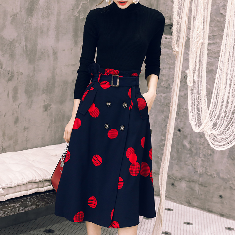 / 名媛女神套裝秋兩件套網紅針織衫上衣收腰氣質裙子高腰半身長裙潮