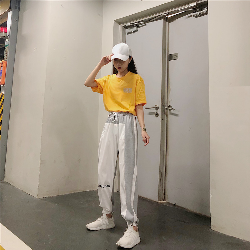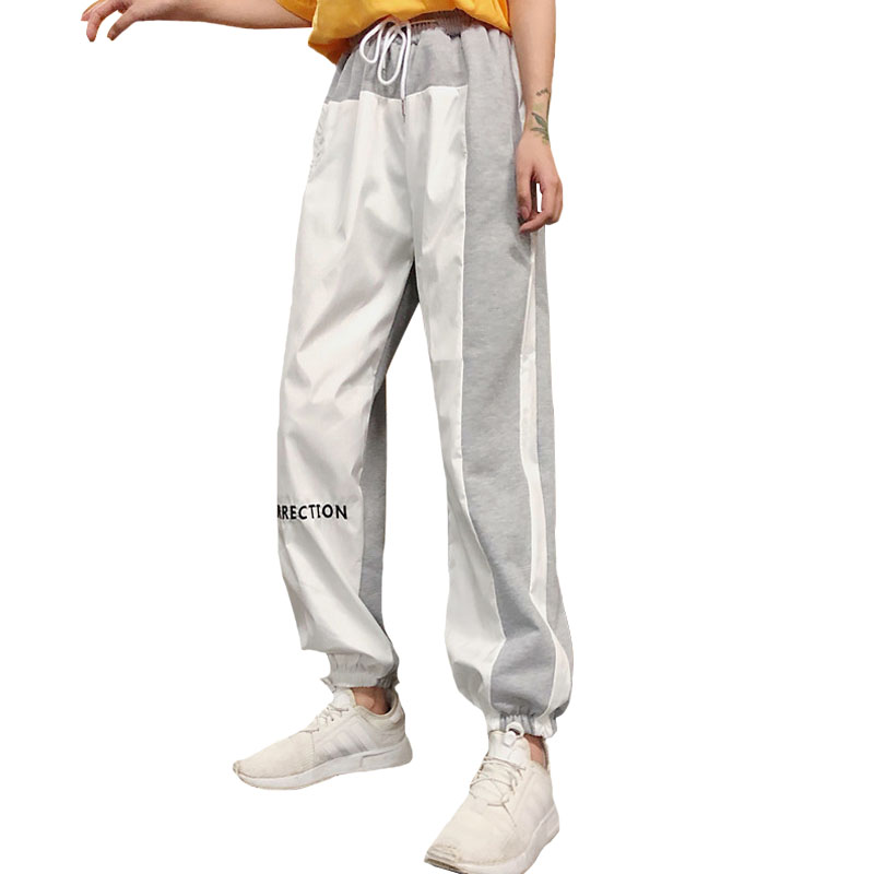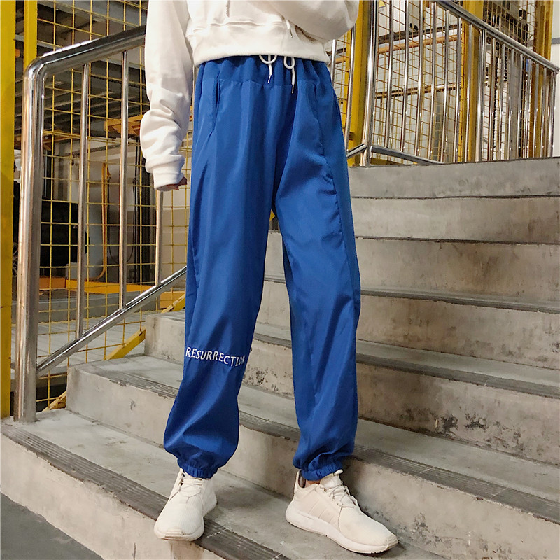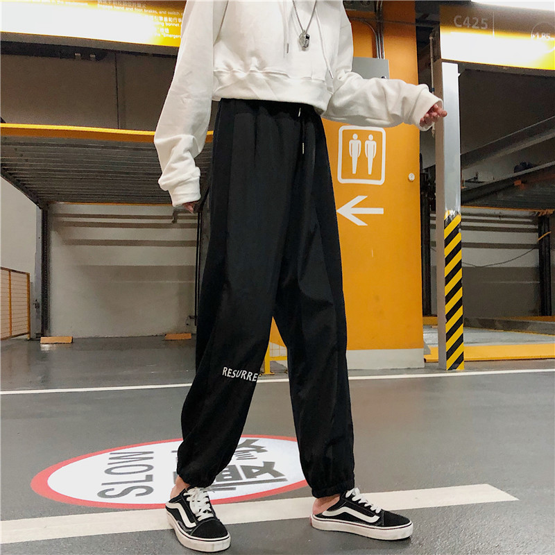 / 秋裝女裝韓版寬松百搭哈倫褲薄款字母刺繡褲子高腰運動休閑褲長褲