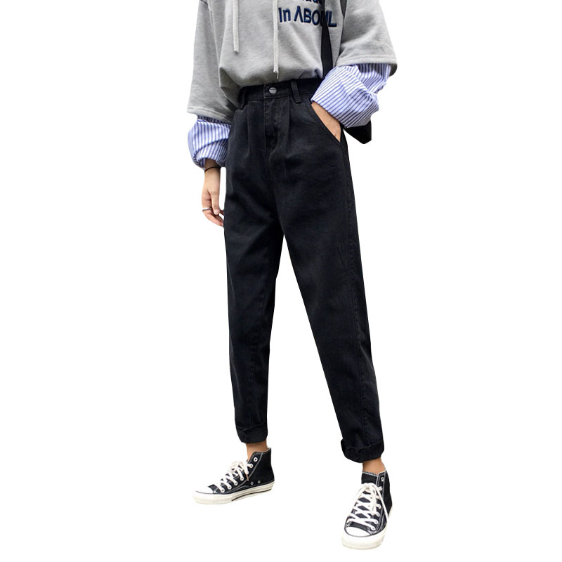 / 秋季韓版寬松黑色牛仔褲高腰顯瘦闊腿褲直筒褲長褲簡約學生褲子女