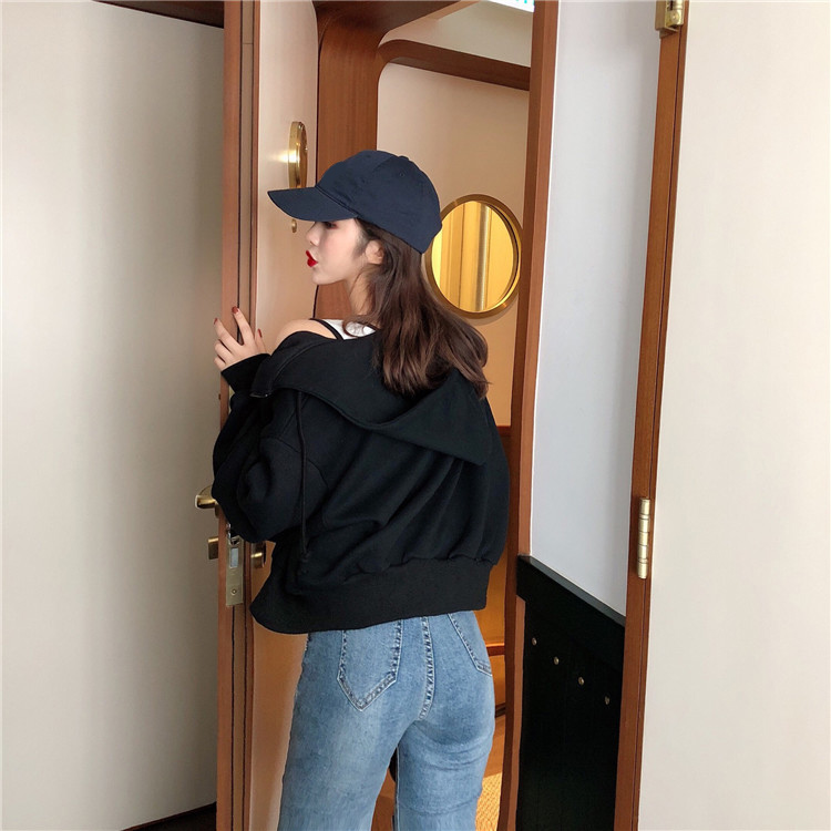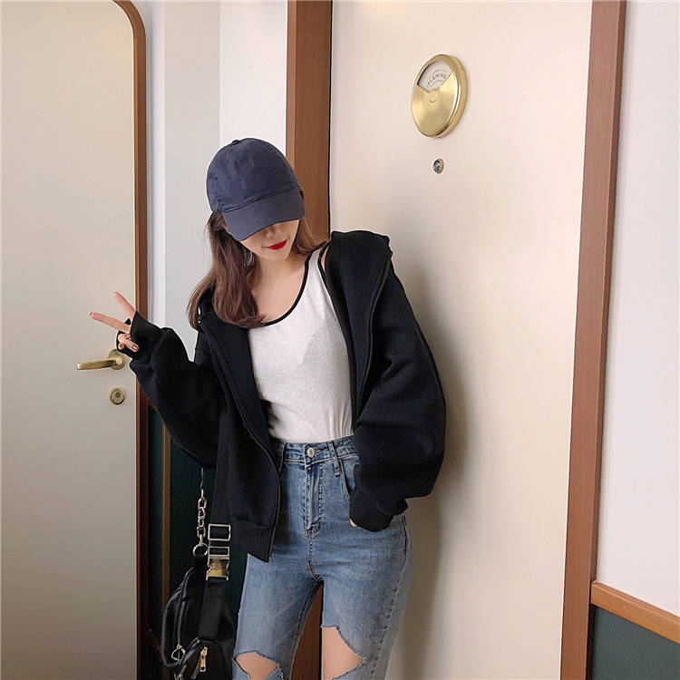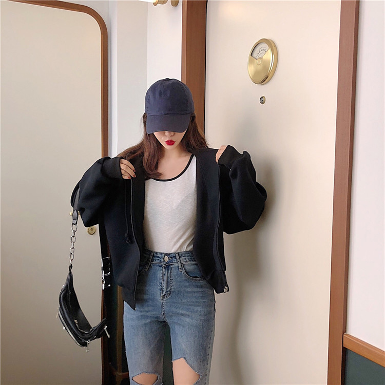 / 小清新學生秋季新款韓版百搭chic風顯瘦純色拉鏈長袖連帽衛衣外套
