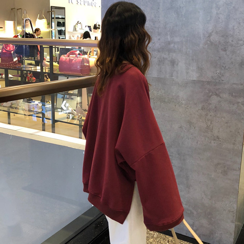 時尚秋裝女2018新款韓版學生寬松開叉印花衛衣喇叭長袖圓領上衣潮